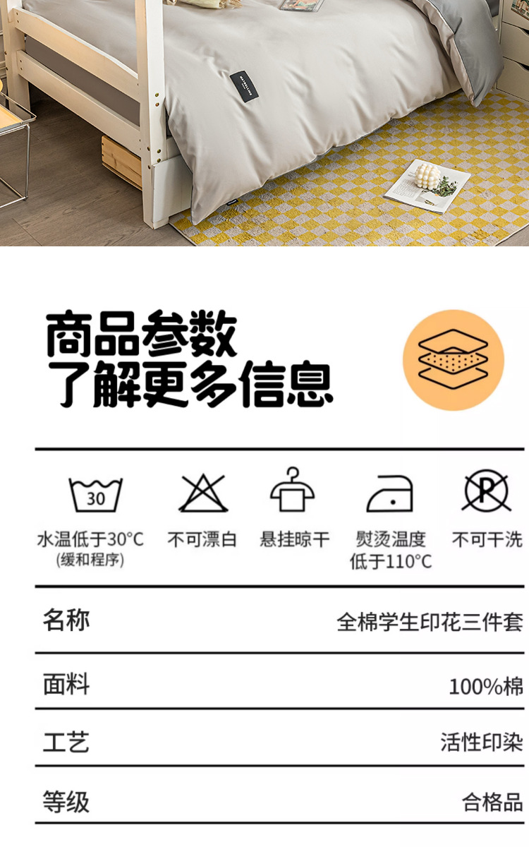(modelo de sábana) tres juegos de algodón para estudiantes [edredón 150 * 200cm, sábana 160 * 230cm, almohada 48 * 74cm * 1]