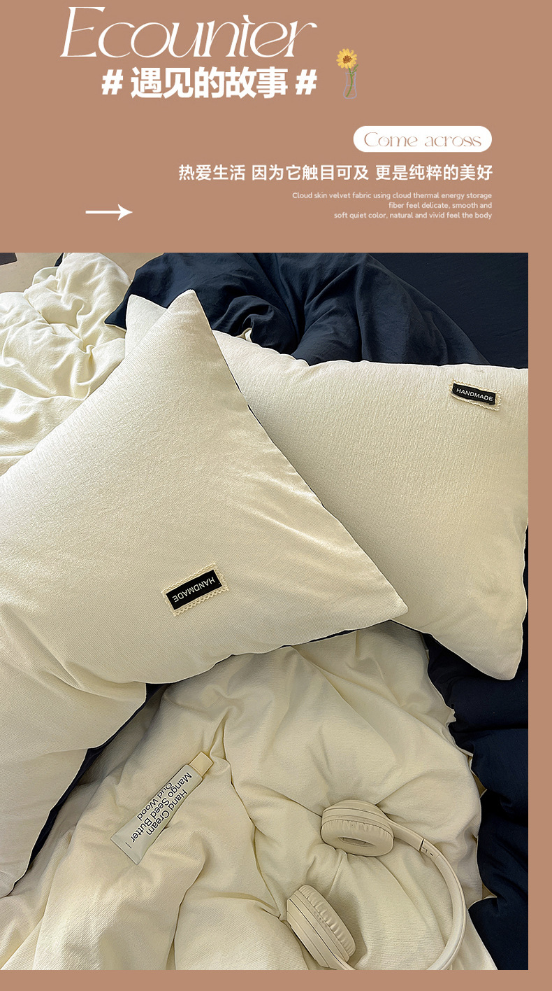 SCHNELL KIT2025 piel más veludo conjunto de cuatro piezas simple color sólido conjunto de ropa de cama individual dormitorio estudiantil abrasión