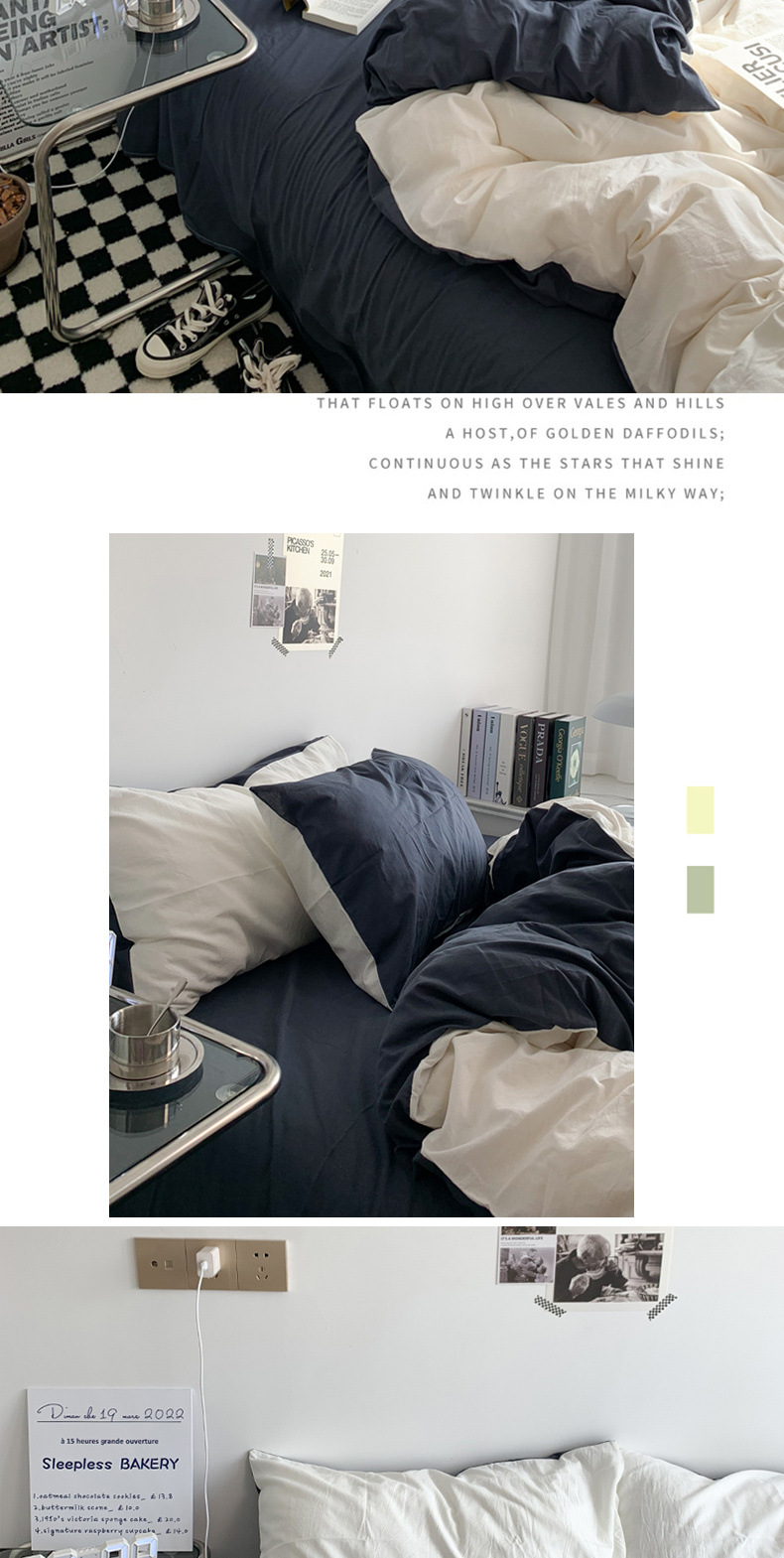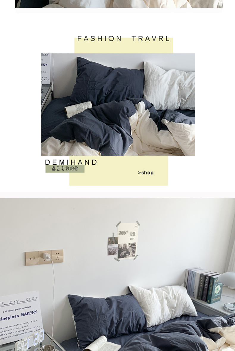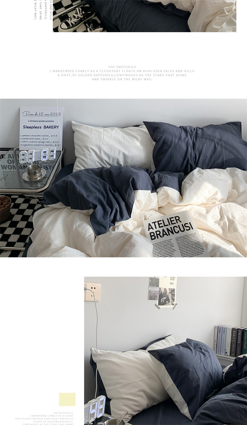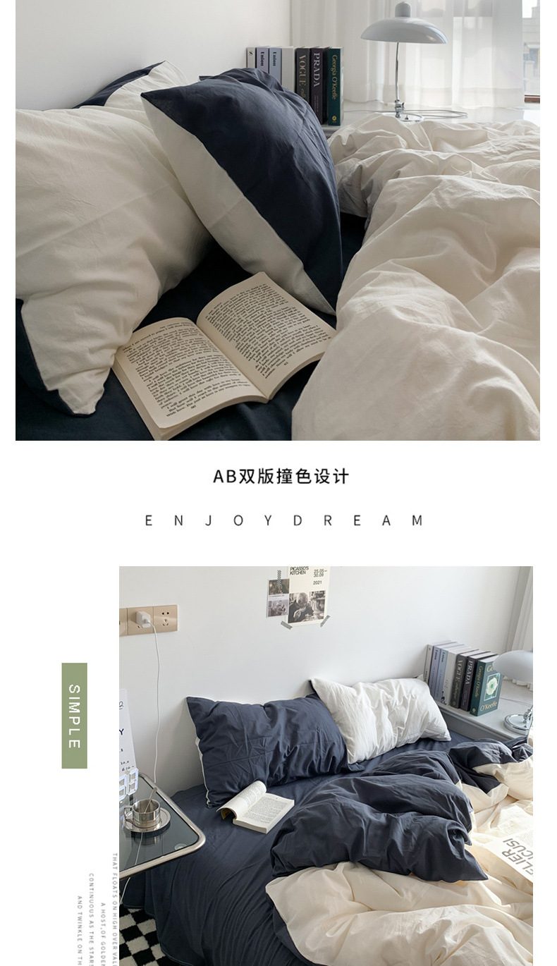 Viento nórdico simple color sólido tres piezas de ropa de cama dormitorio de estudiantes de verano cuatro piezas de ropa de cama