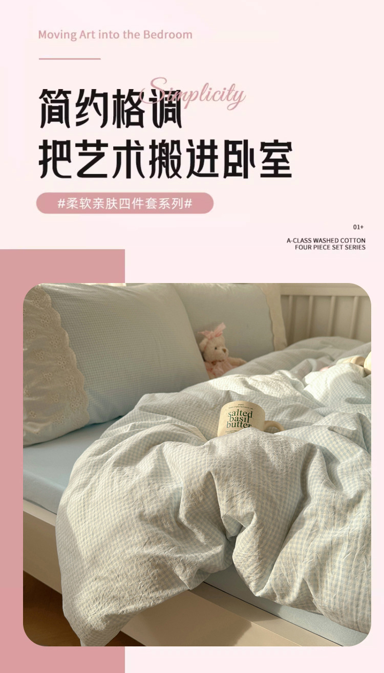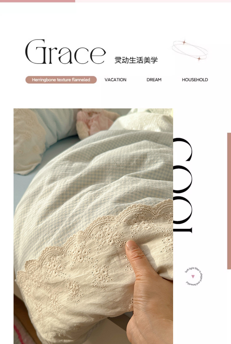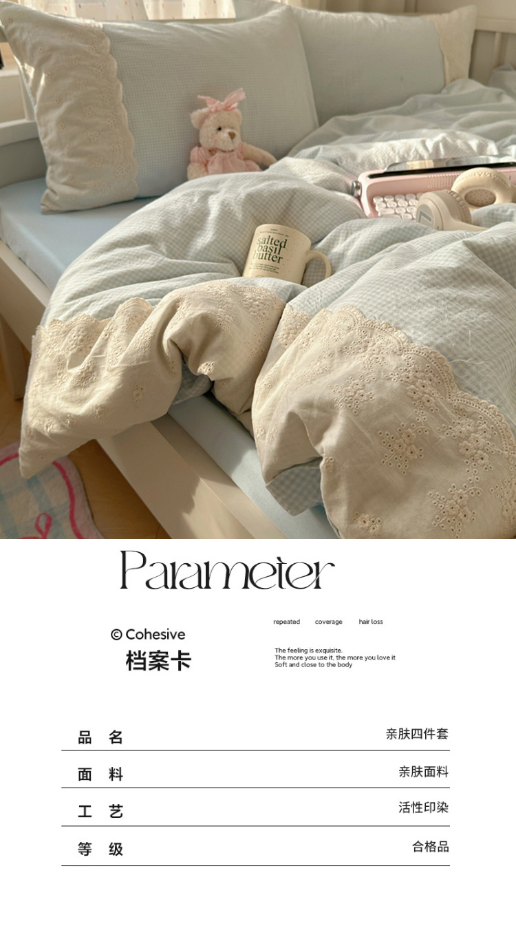 Cama de algodón fresco de seda de cuatro piezas, encaje princesa de viento, colchón de cubierta, sábanas de tres piezas
