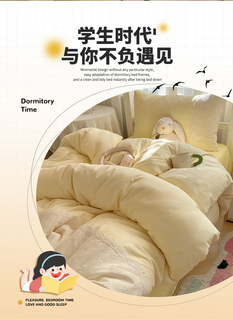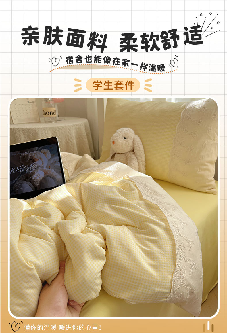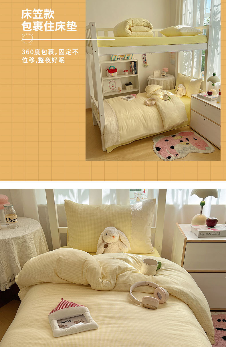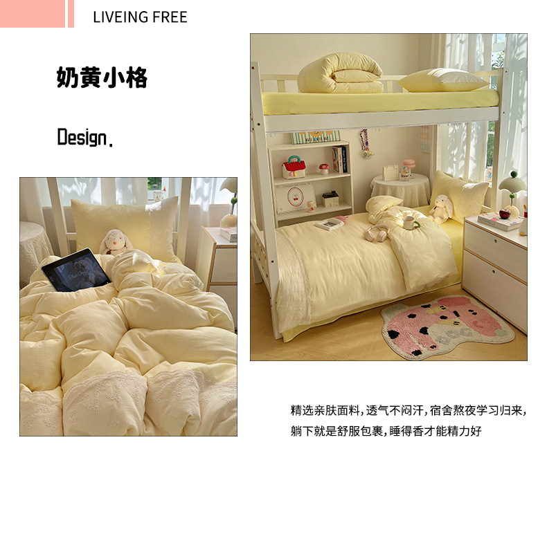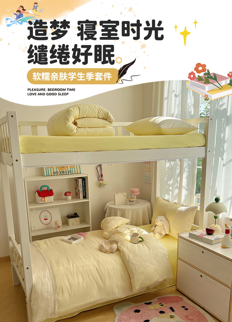 Algodón lavado con agua dormitorio estudiantil conjunto de tres piezas 2025 nueva colcha de cama de alojamiento de la escuela secundaria ropa de cama