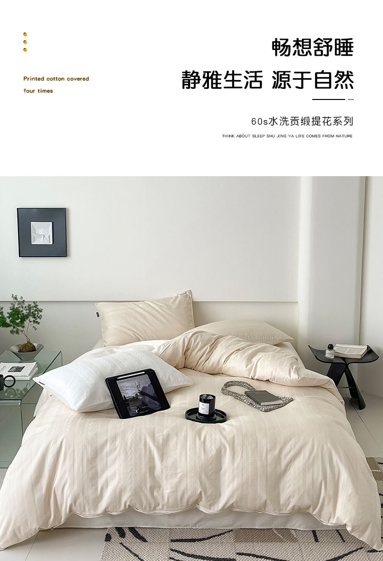 Algodón 60S algodón de fibra larga algodón de cuatro piezas 100 algodón ligero de lujo de alta calidad funda de edredón ropa de cama de tres piezas
