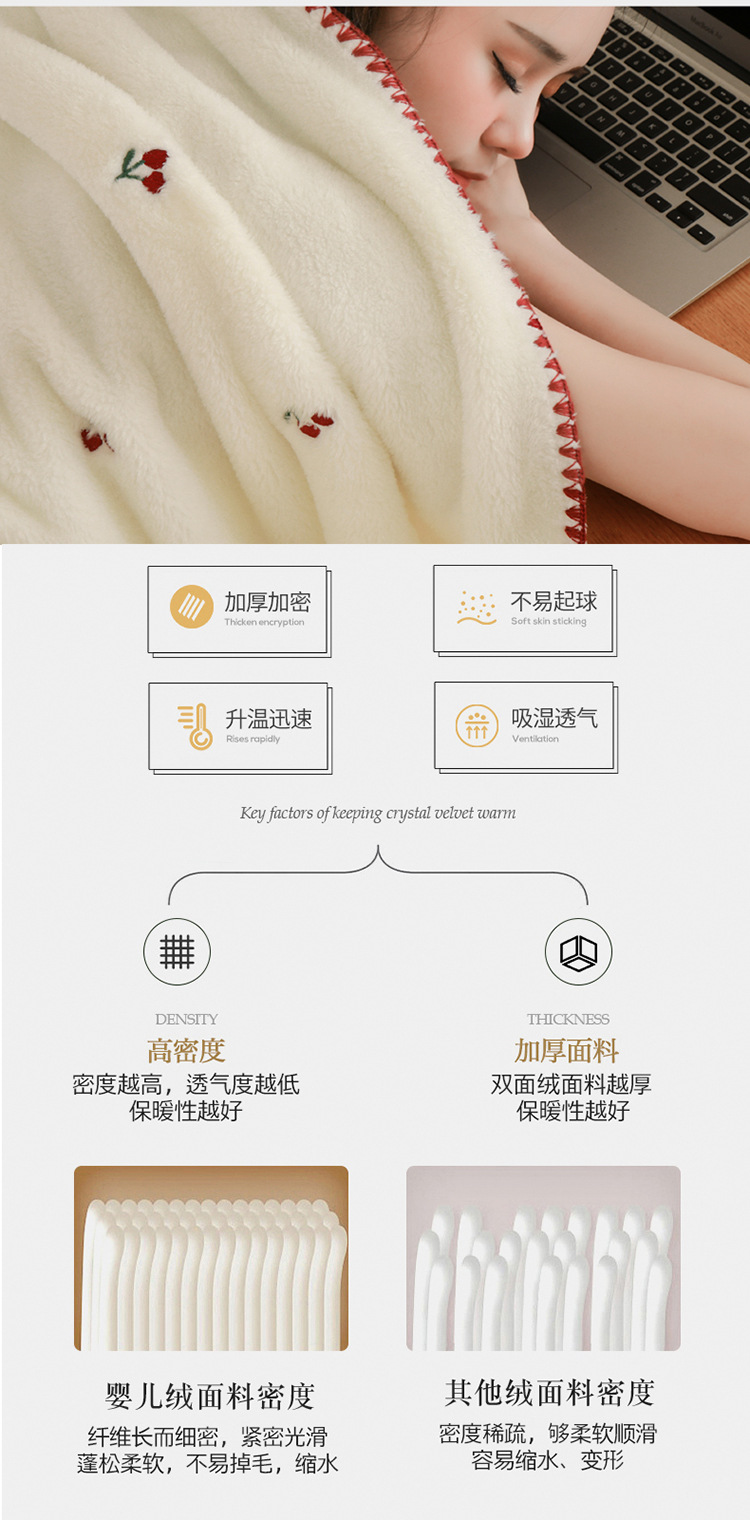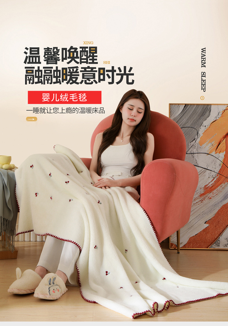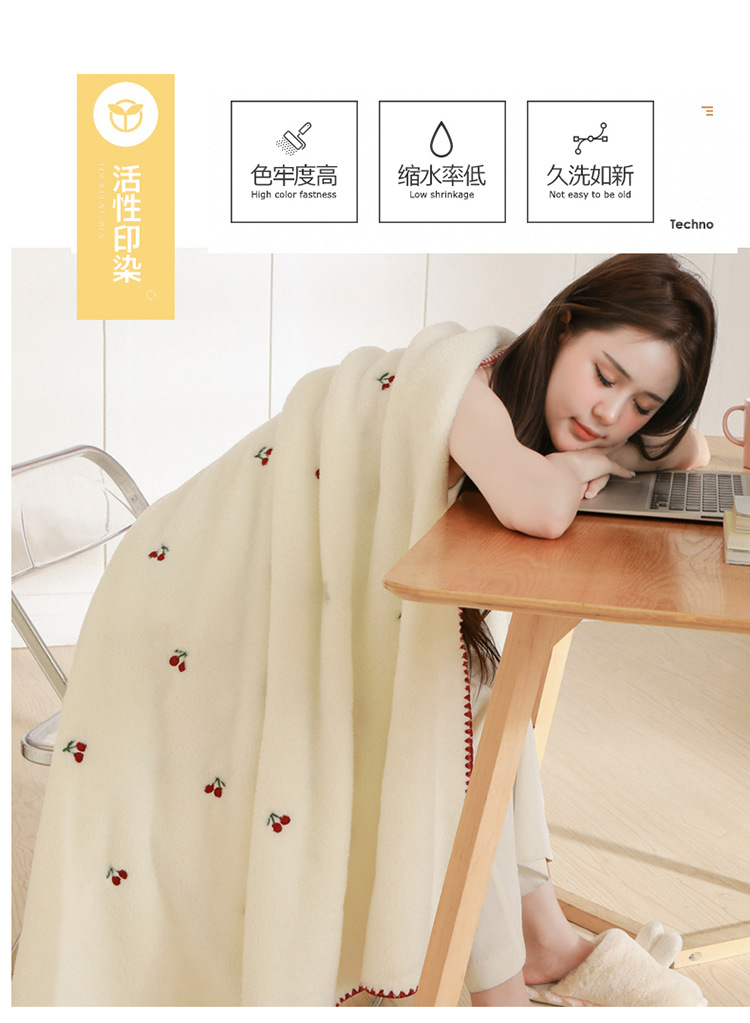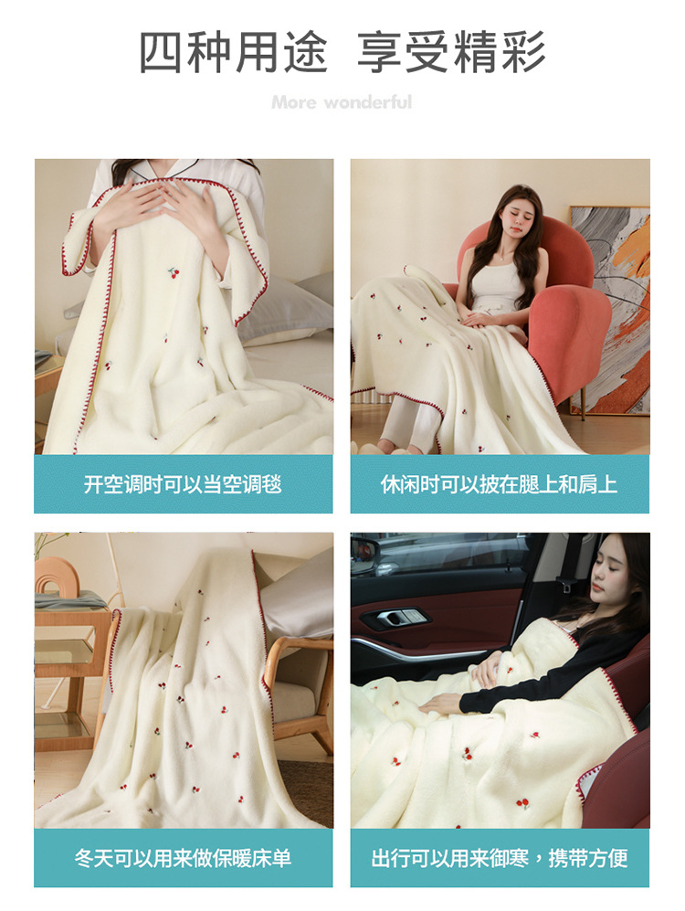 Manta de lana de coral bordada, manta de chal, manta para la siesta de oficina, manta de sofá gruesa, manta de aire acondicionado, uso de cama