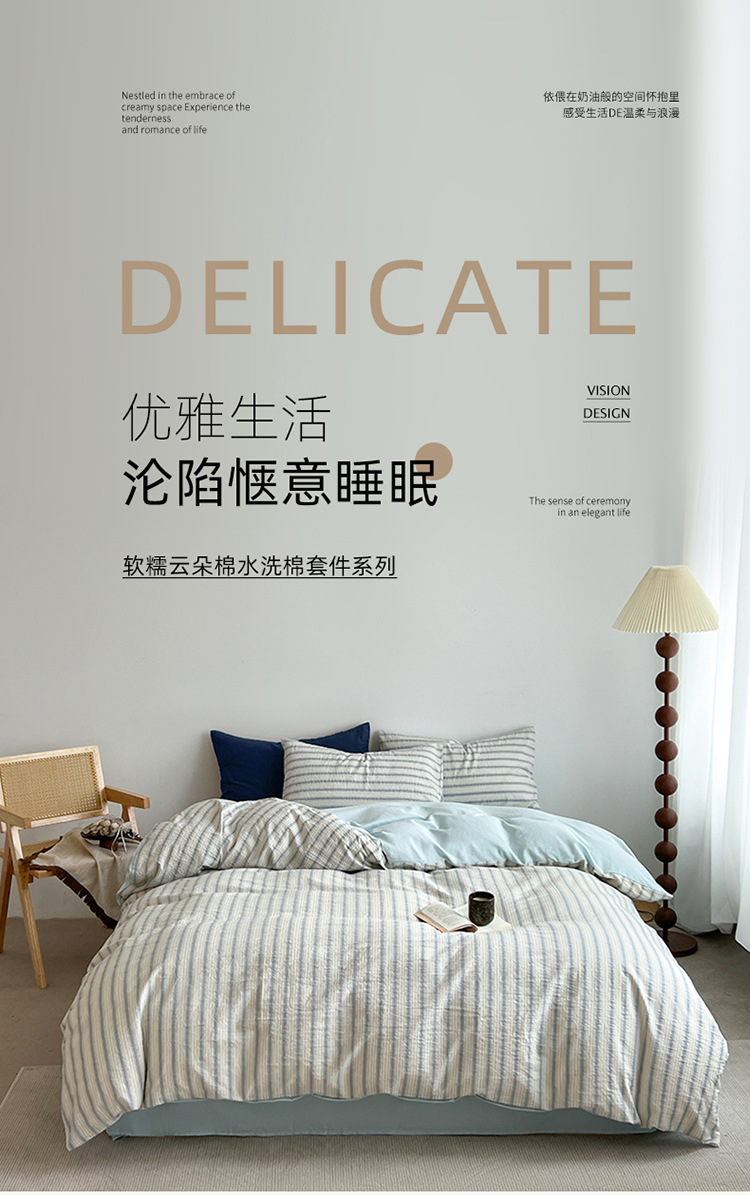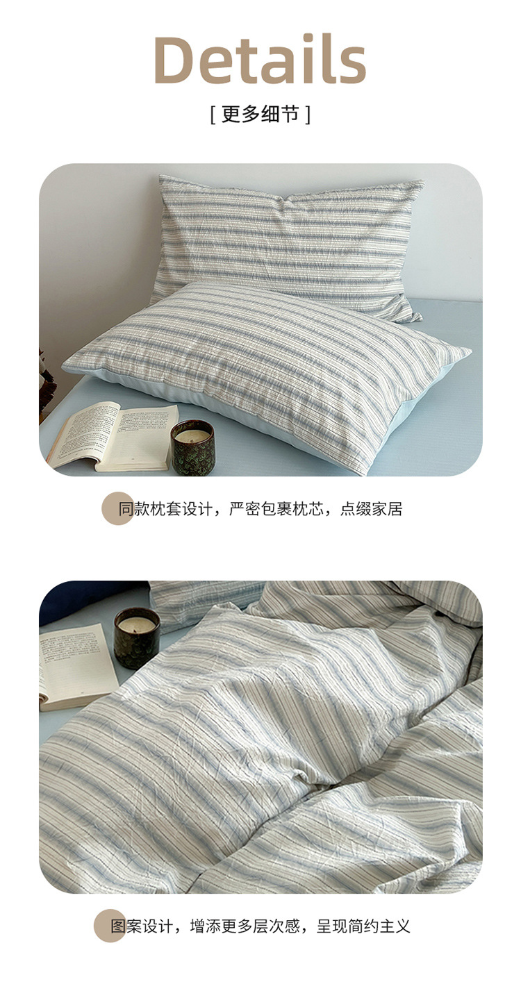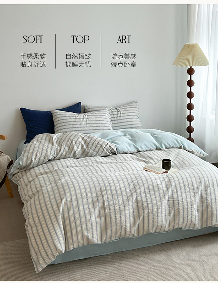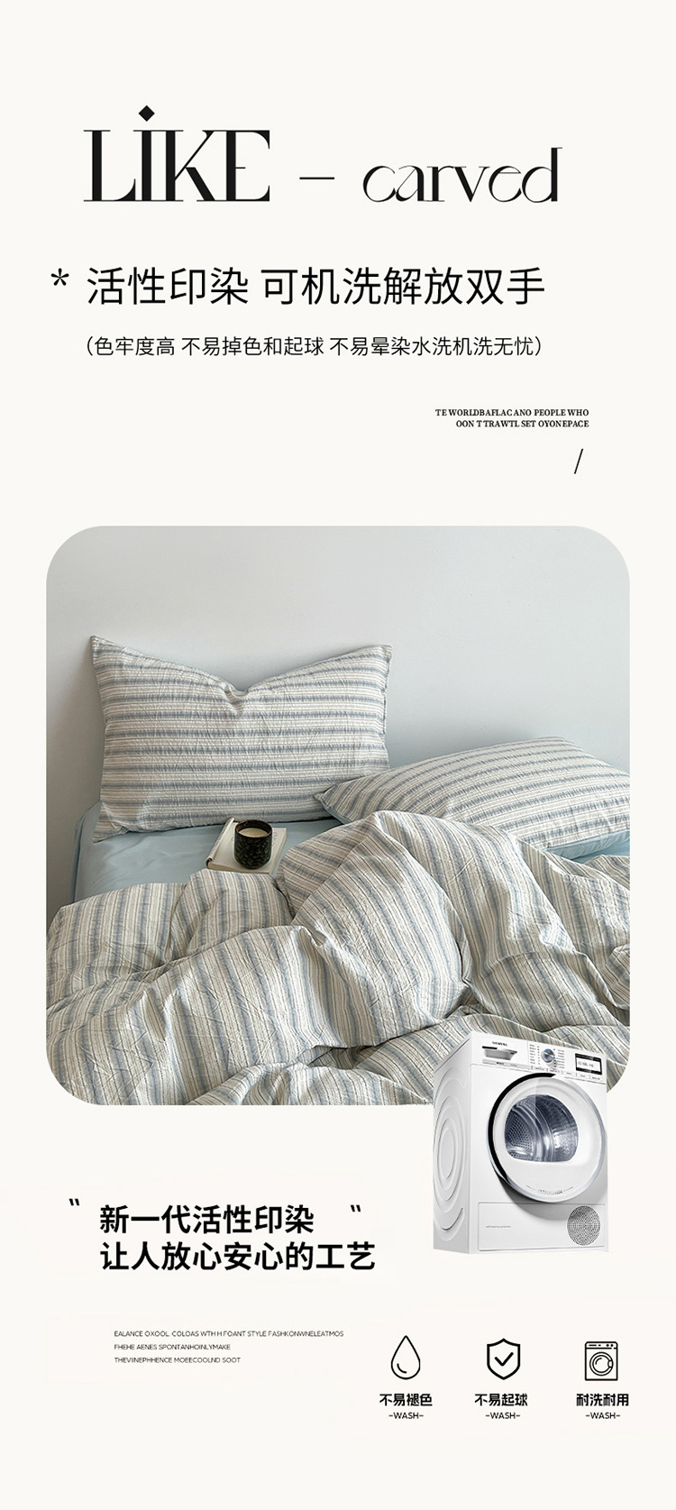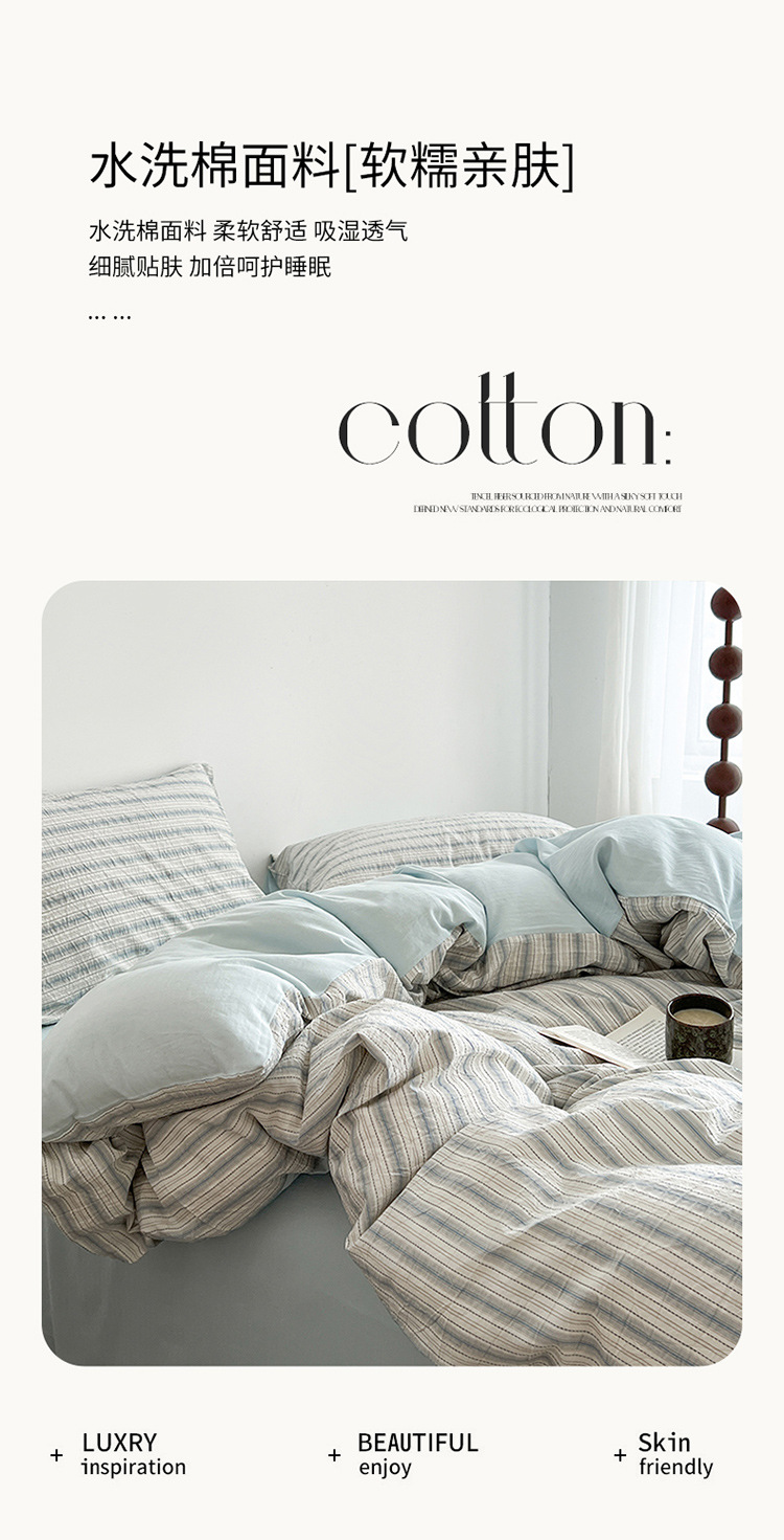 Cama a cuadros a rayas de algodón lavado de cuatro piezas, dormitorio de estudiantes de primavera y verano, sábana individual, funda de edredón, juego de tres piezas lavable a máquina