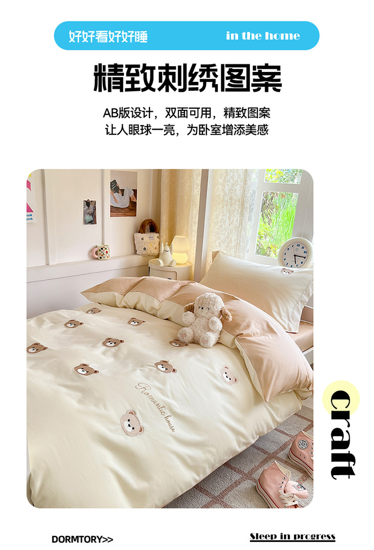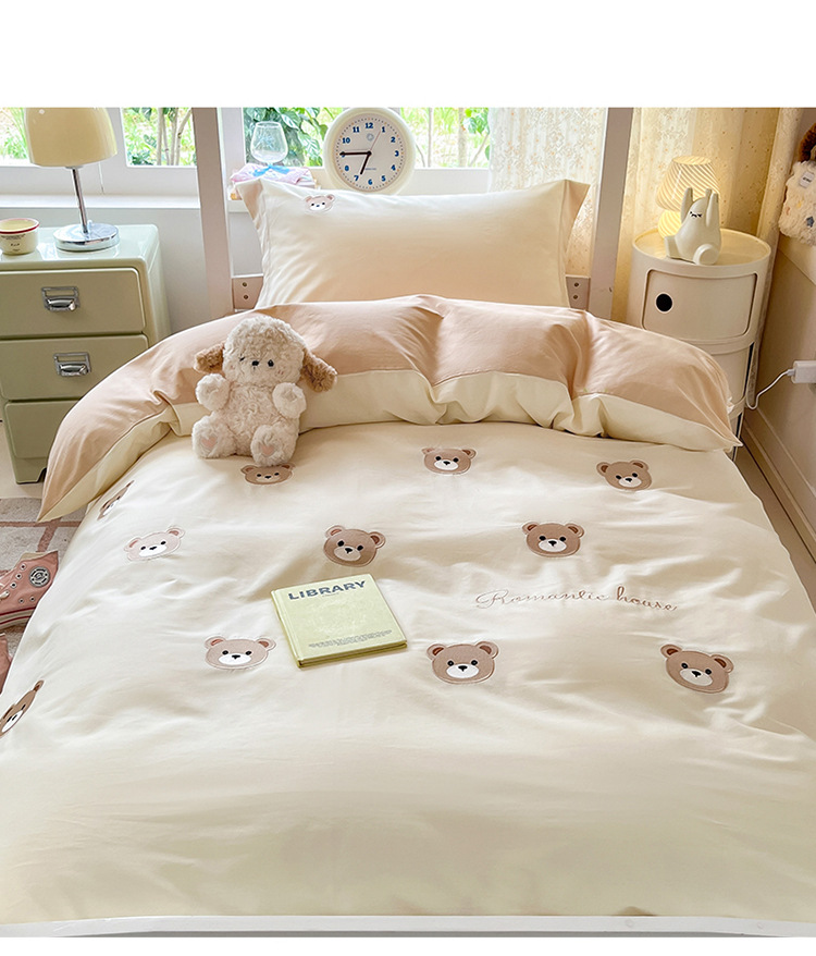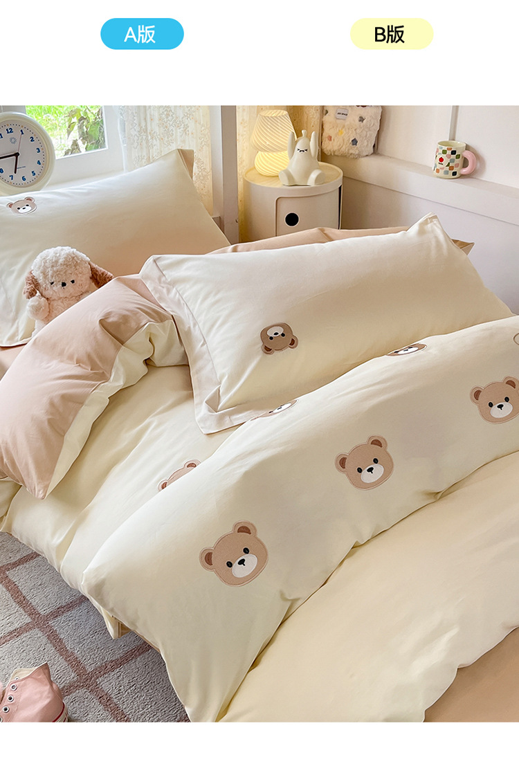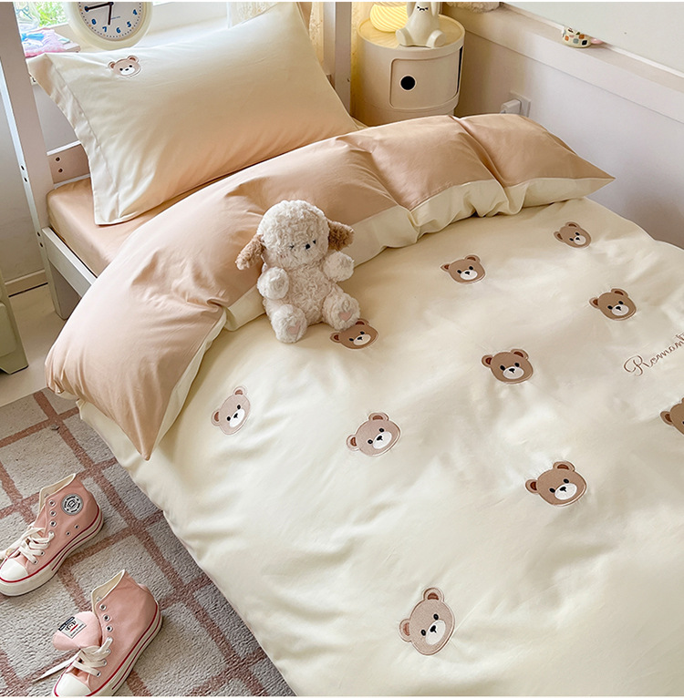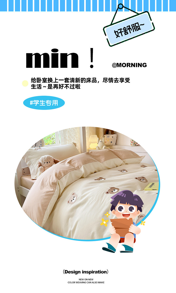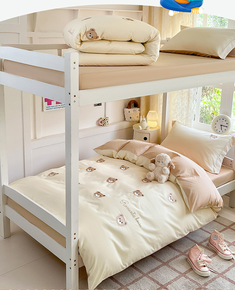 Cama de dormitorio de estudiantes lavada y cepillada Juego de cama de edredón de tres piezas Juego de sábanas de cuatro piezas Juego de sábanas individuales lavables