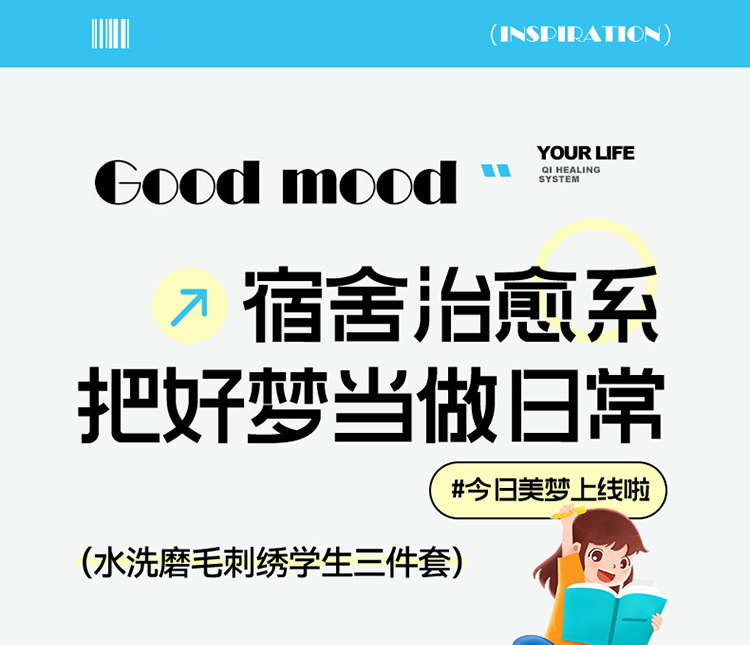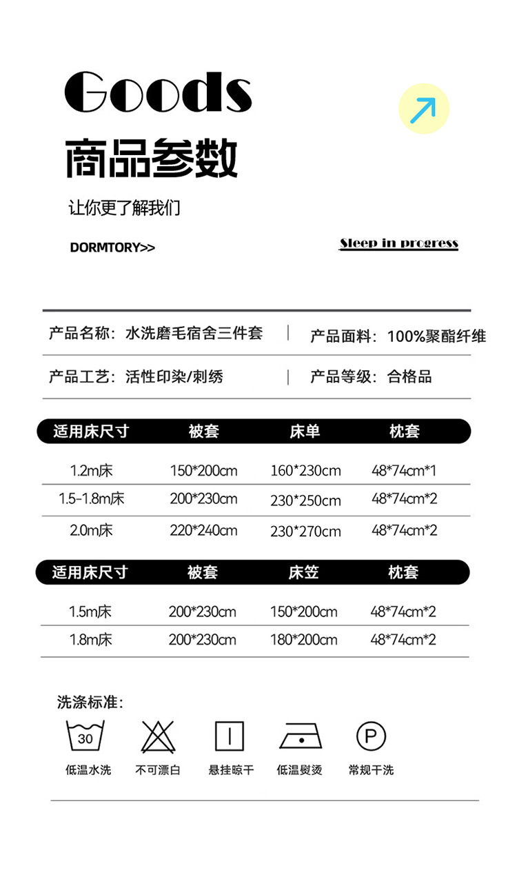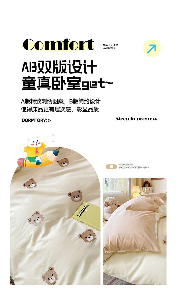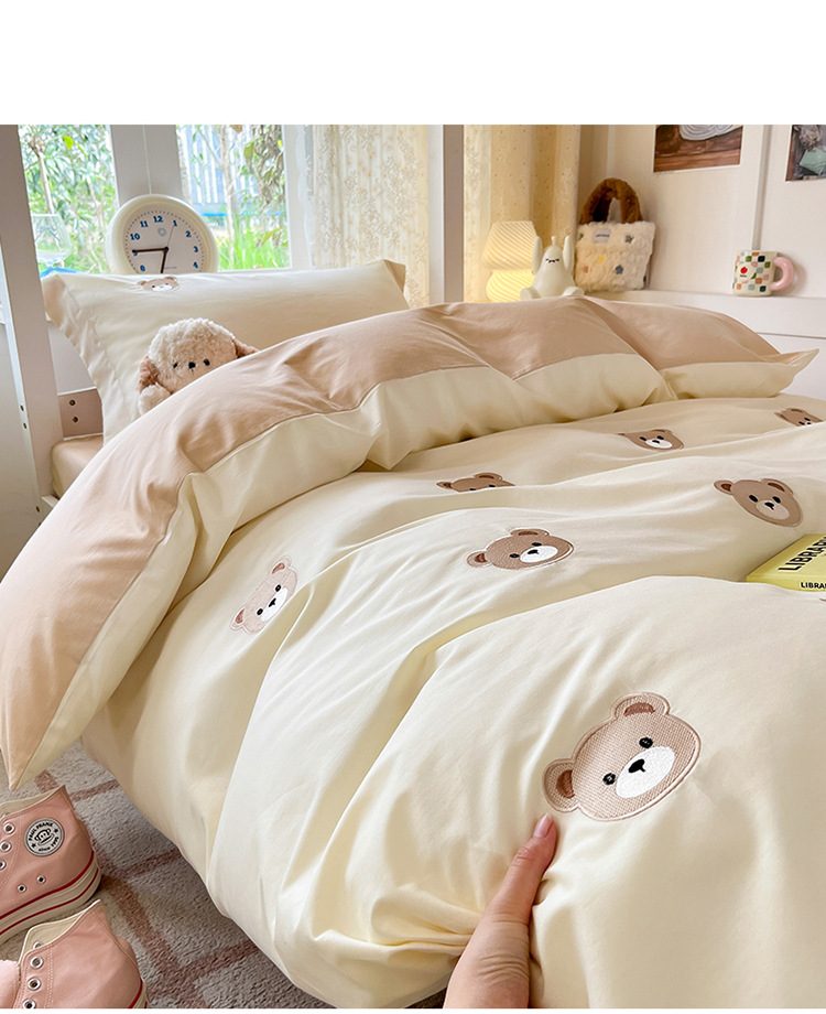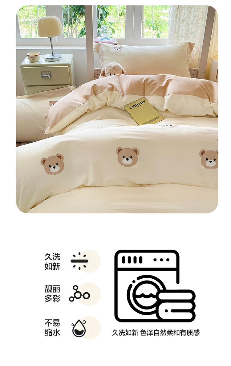 Cama de dormitorio de estudiantes lavada y cepillada Juego de cama de edredón de tres piezas Juego de sábanas de cuatro piezas Juego de sábanas individuales lavables