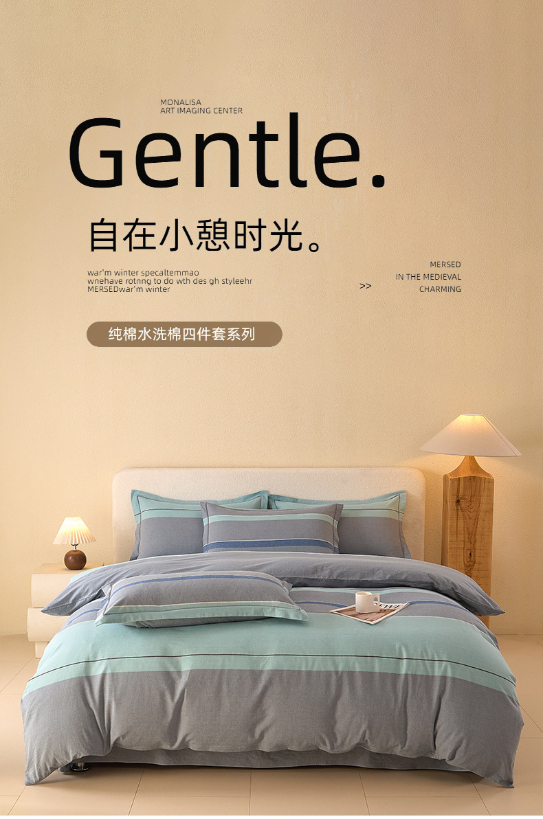 Juego de cuatro piezas de cama de algodón puro en la temporada escolar 2025 nuevo juego de tres piezas de ropa de cama de otoño y primavera