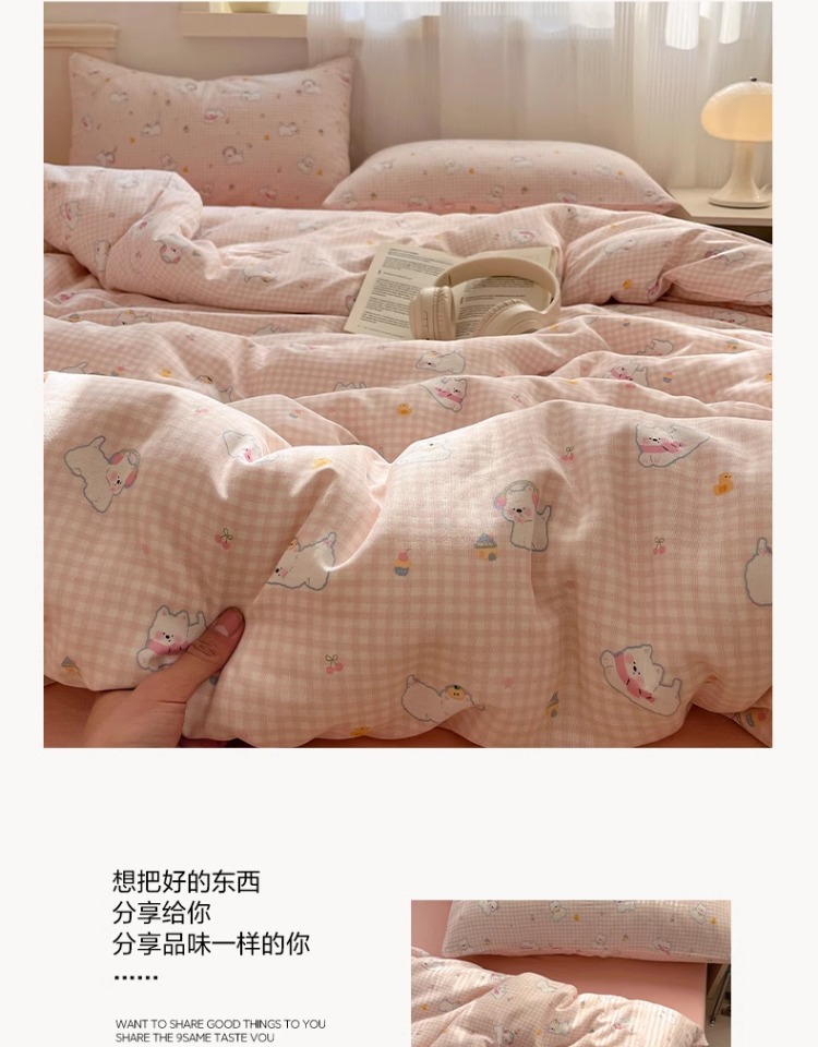 Cama de algodón de hilo de doble capa de cuatro piezas 100 algodón 2025 nuevo estilo funda de edredón sábana ropa de cama individual de tres piezas