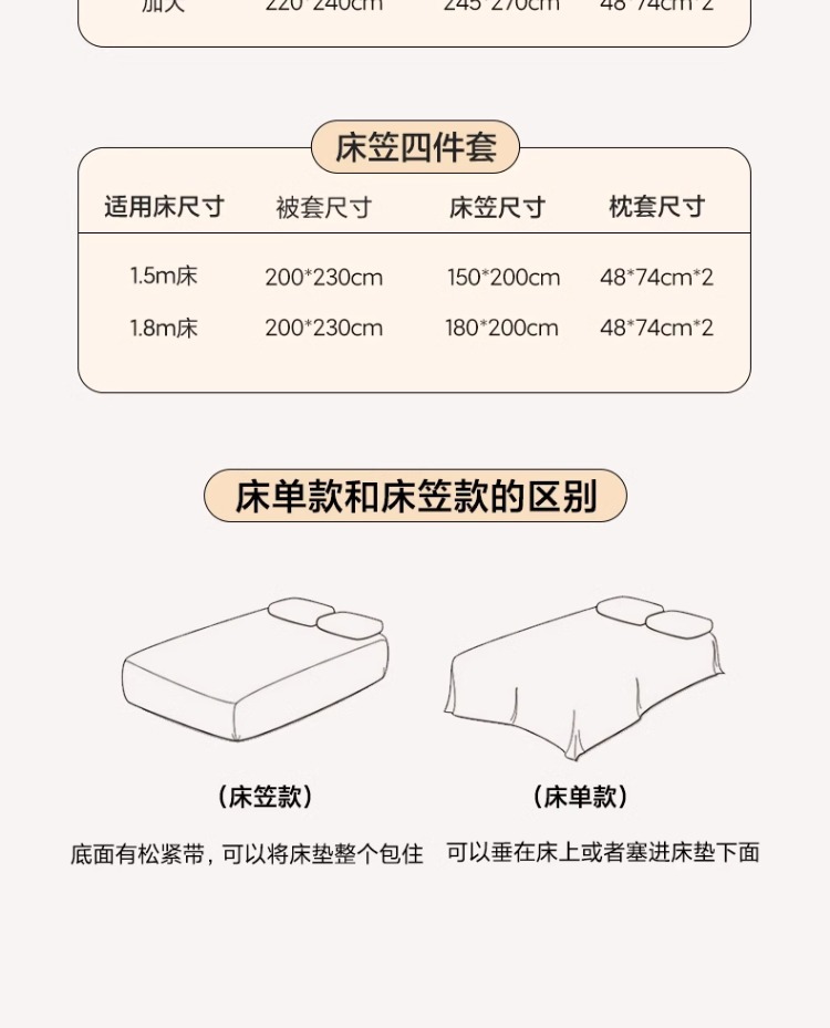 | Especificaciones de tamaño | Cama de 0,9 m [juego de sábanas de tres piezas] adecuado para núcleo de edredón de 150x200cm,Juego de sábanas de tres piezas de 1,2 m [sábanas 180x230 funda de edredón 150x200],Juego de sábanas de cuatro piezas de 1,5 m [sábanas 245x250 funda de edredón 200x230],Juego de sábanas de cuatro piezas de 1,8 m [sábanas 245x250 funda de edredón 200x230],Juego de sábanas de cuatro piezas de 2,0 m [sábanas 245x270 funda edredón 220x240],Juego de cuatro piezas de cama de 1,5 m [funda de cama 150x200 edredón 200x230],Juego de cuatro piezas de cama de 1,8 m [Juego de cama de 180x200 funda de edredón 200x230] |