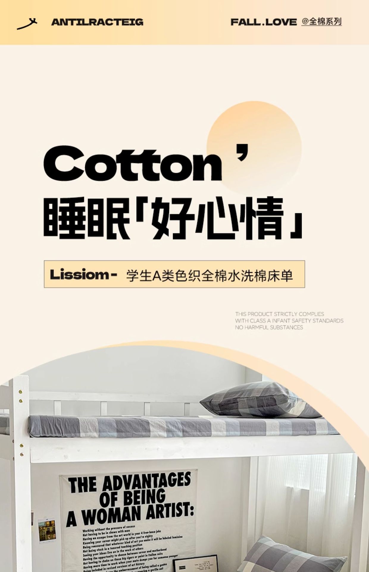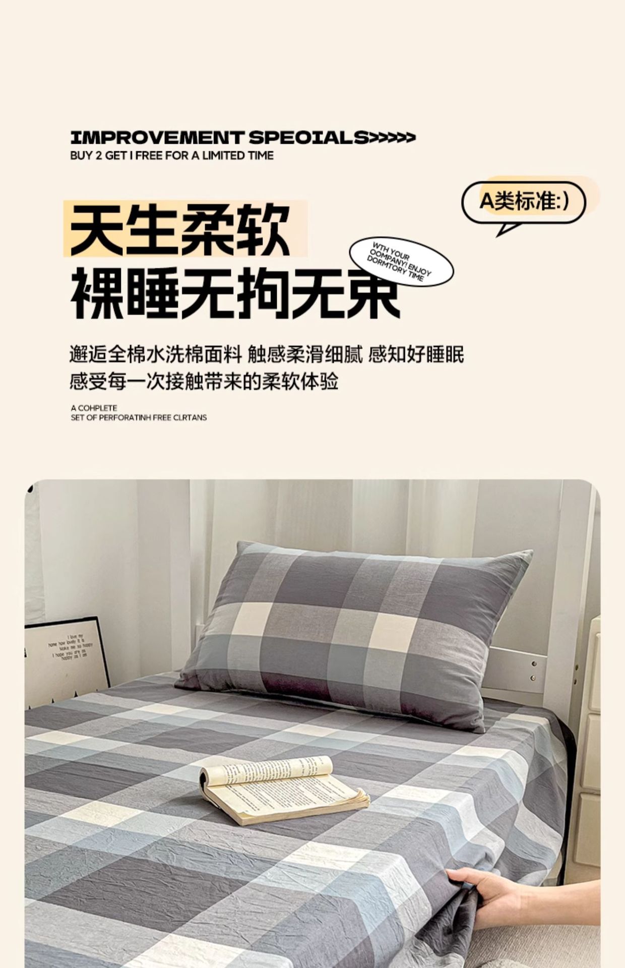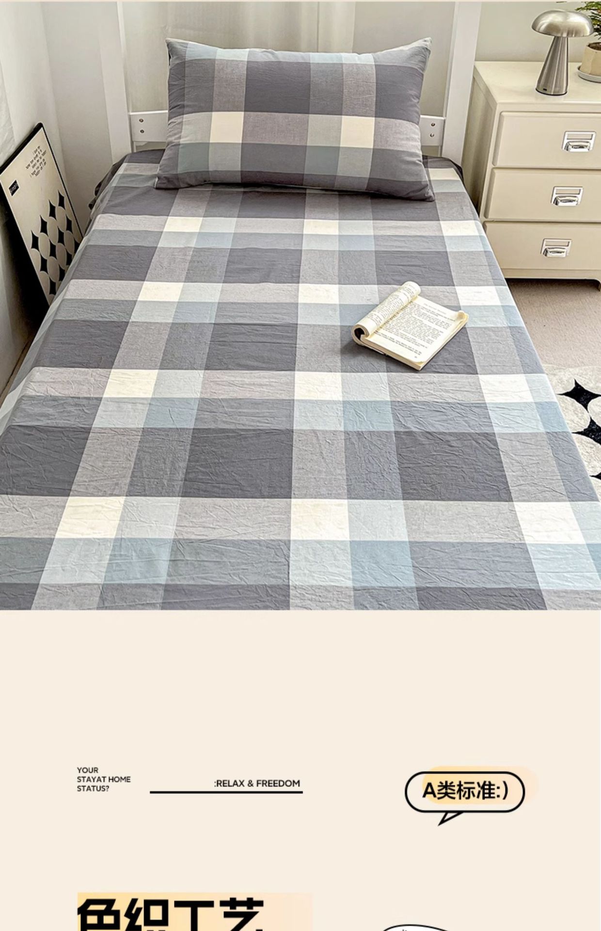 2025 nueva sábana de algodón simple de una sola pieza para dormitorio de estudiantes, funda de almohada de algodón individual, juego de tres piezas