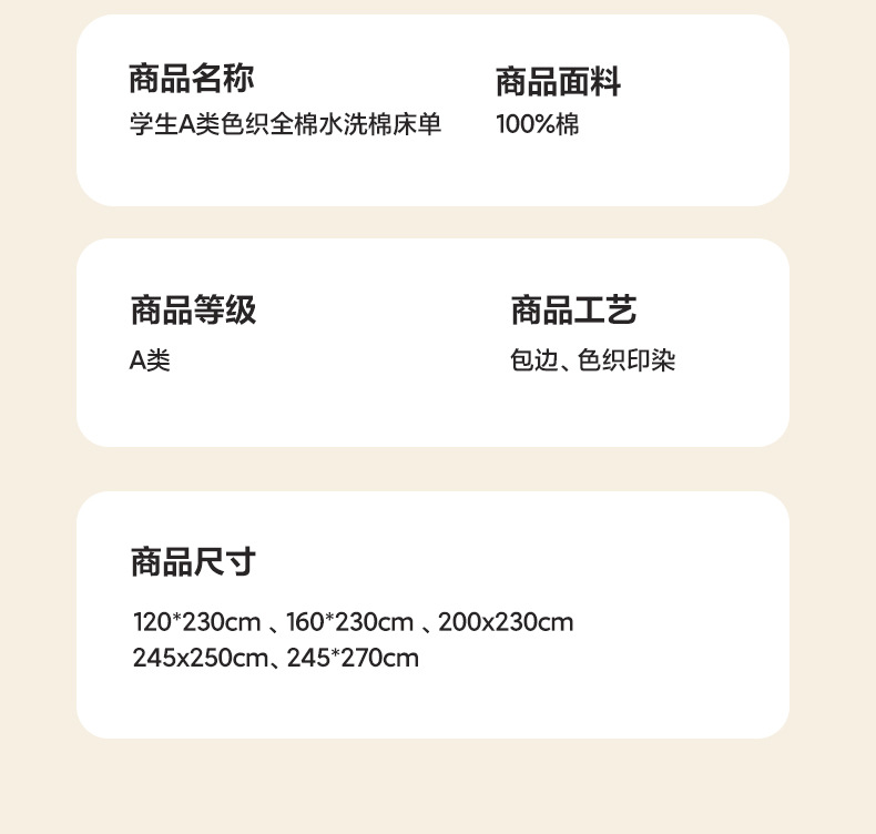 | Especificaciones de tamaño | Ropa de cama individual-120x230cm [para cama de estudiante 0.8-0.9],Ropa de cama individual-160x230cm [Adecuado para camas 1.0-1.2m],Ropa de cama individual-200x230cm [para cama 1.35-1.5m],Ropa de cama individual-245x250cm [para camas de 1,5-1,8 m],Ropa de cama individual-245x270cm [para cama 2.0-2.2m],[Juego de sábanas de dos piezas] Funda de almohada de sábana de 120x230cm,[Juego de sábanas de dos piezas] Una funda de almohada para sábanas de 160x230cm,[Juego de sábanas de tres piezas] Un par de fundas de almohada para sábanas de 200x230cm,[Juego de sábanas de tres piezas] Un par de fundas de almohada para sábanas de 245x250cm,[Juego de sábanas de tres piezas] Un par de fundas de almohada para sábanas de 245x270cm |