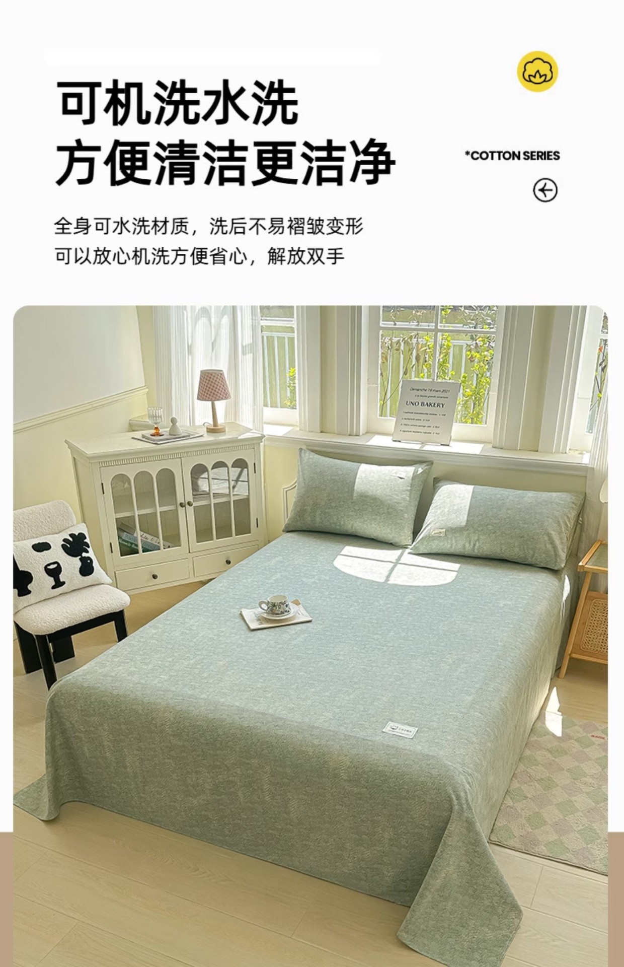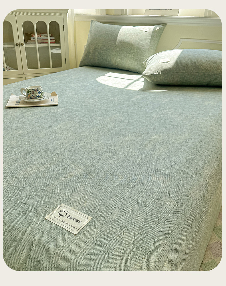 Verano 100 sábanas de tela gruesa vieja de algodón de una sola pieza de algodón algodón lino dormitorio estera edredón funda de almohada simple juego de tres piezas