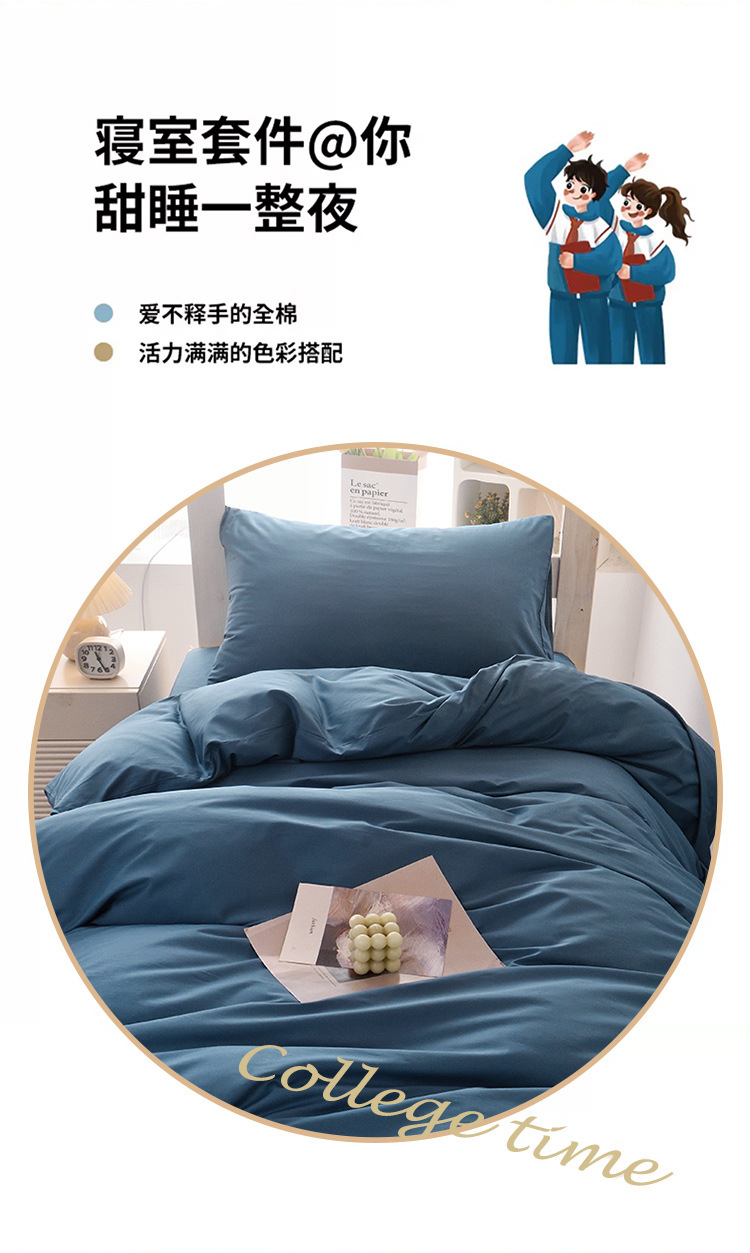 Red Bean University University Cama de algodón de tres piezas Dormitorio Sencilla de algodón puro simple Funda de edredón Ropa de cama Sombrilla de cama Múltiples tamaños