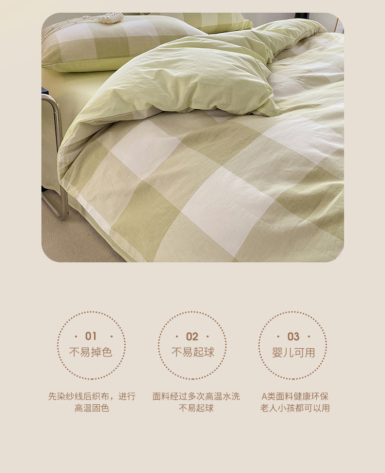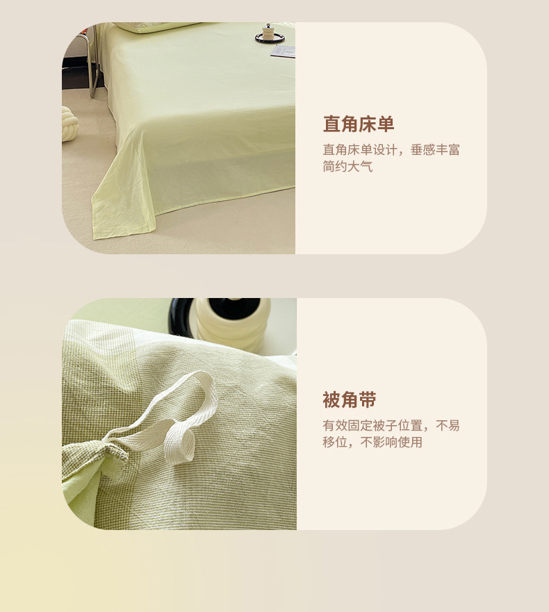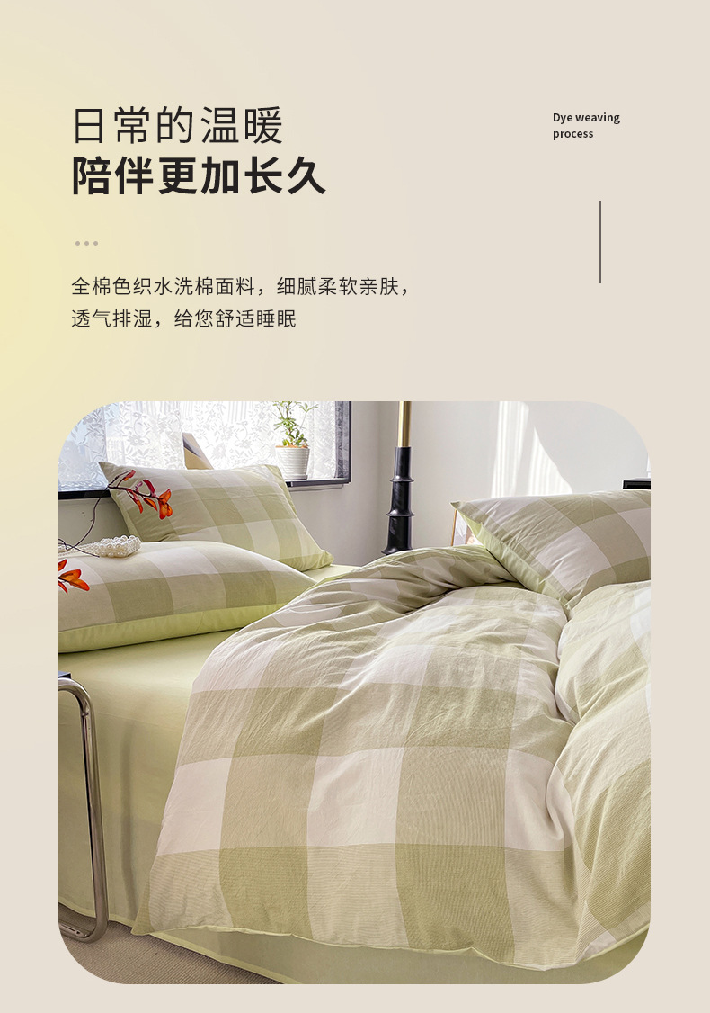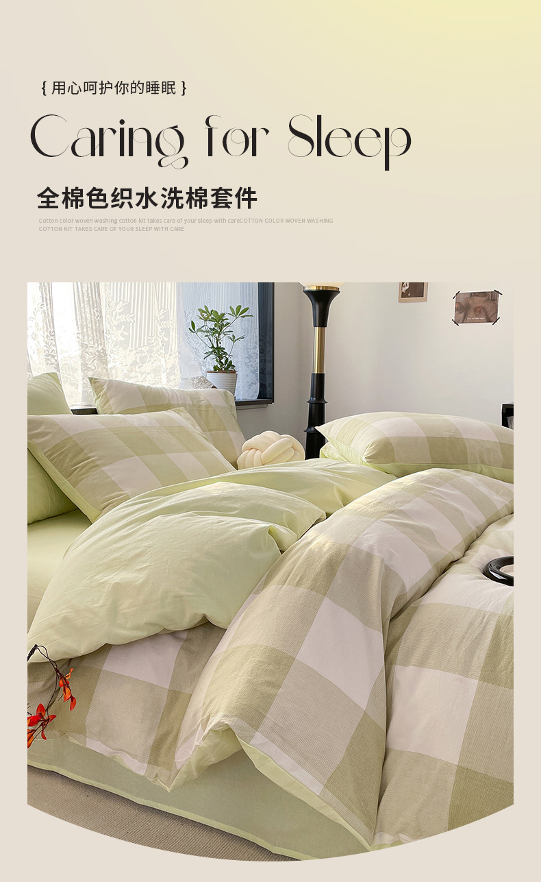 Cama de algodón lavado de algodón de cuatro piezas, sábana de algodón, funda de edredón, dormitorio de estudiantes, ropa de cama de tres piezas, ropa de cama