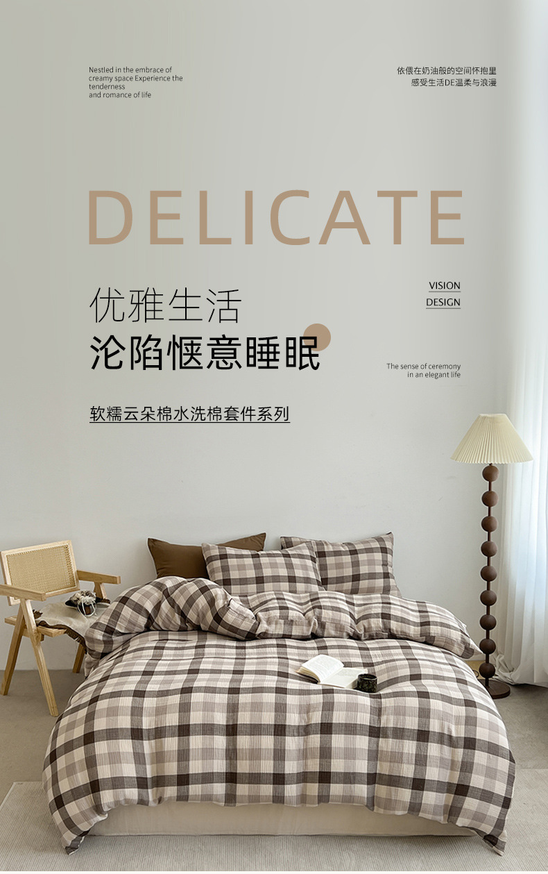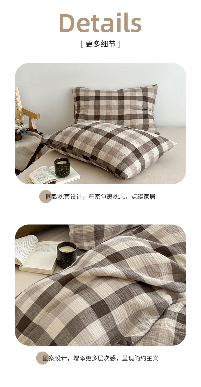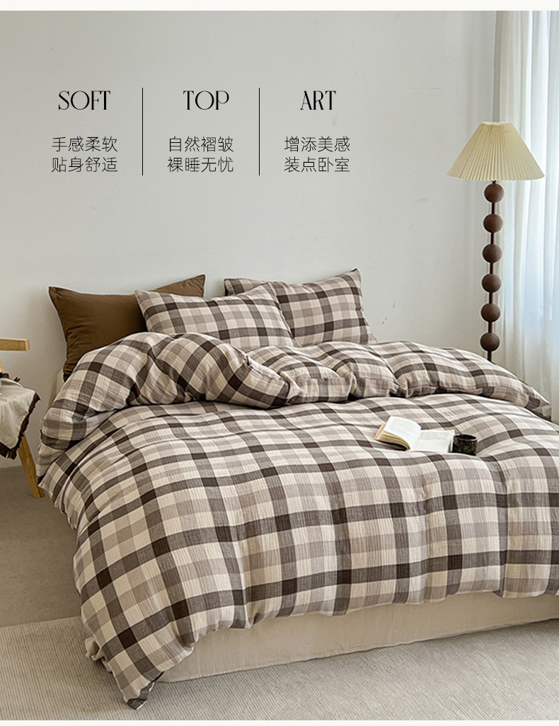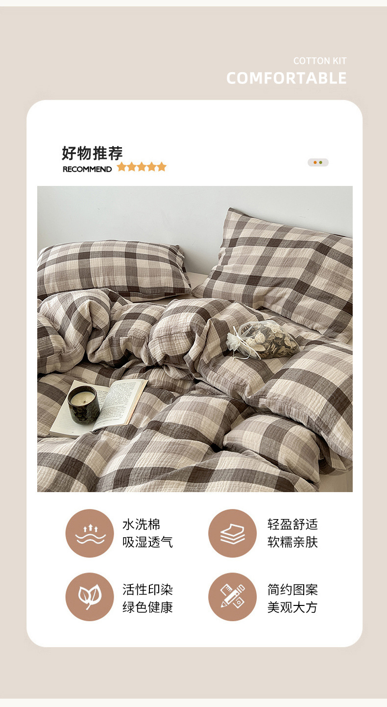 Cama a cuadros a rayas de algodón lavado de cuatro piezas, dormitorio de estudiantes de primavera y verano, sábana individual, funda de edredón, juego de tres piezas lavable a máquina