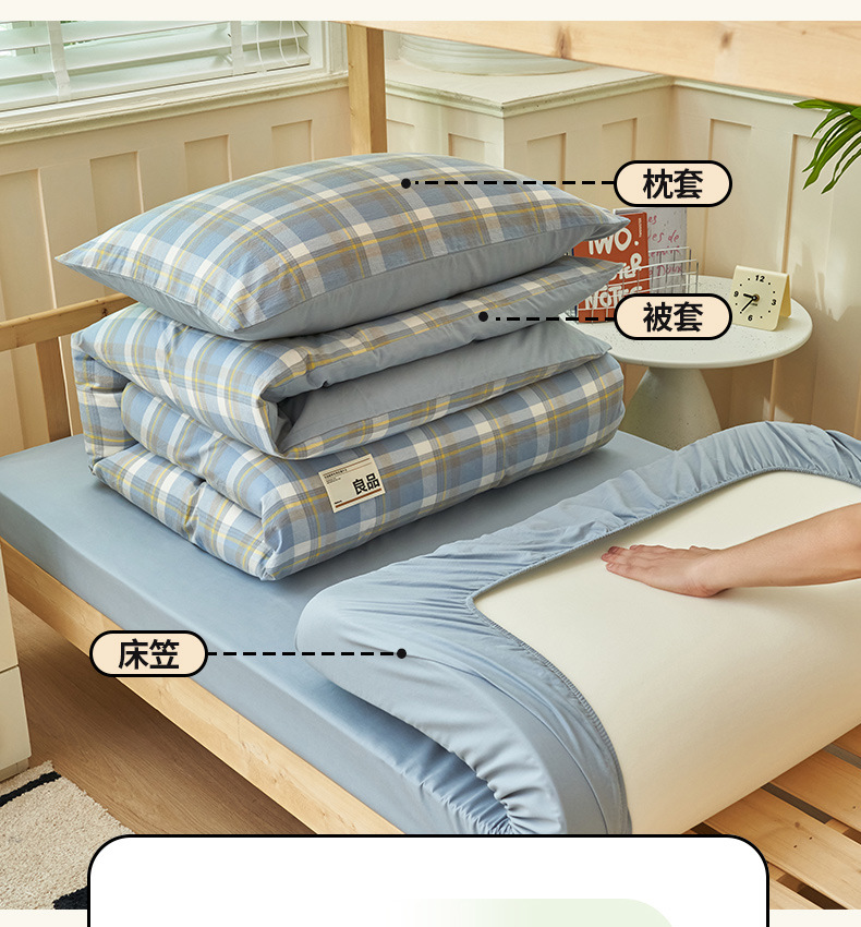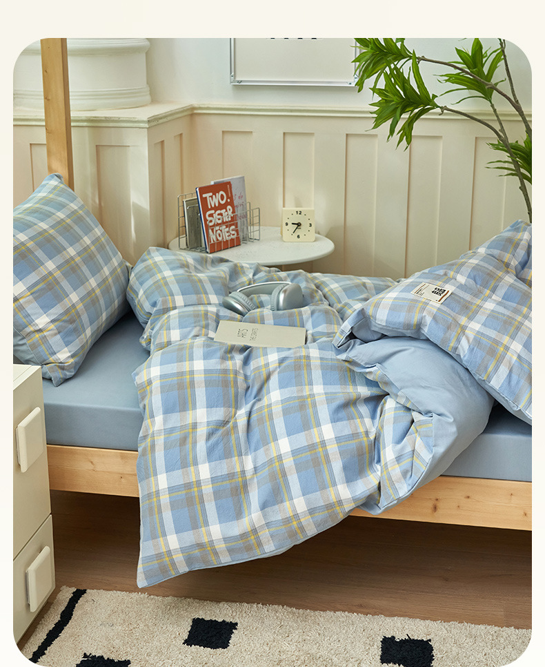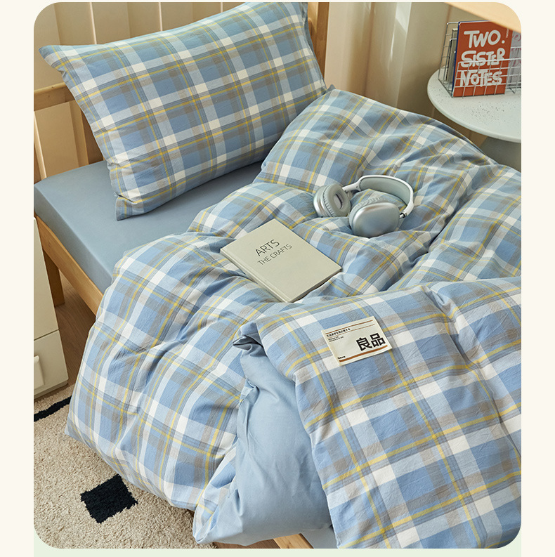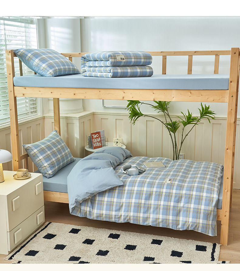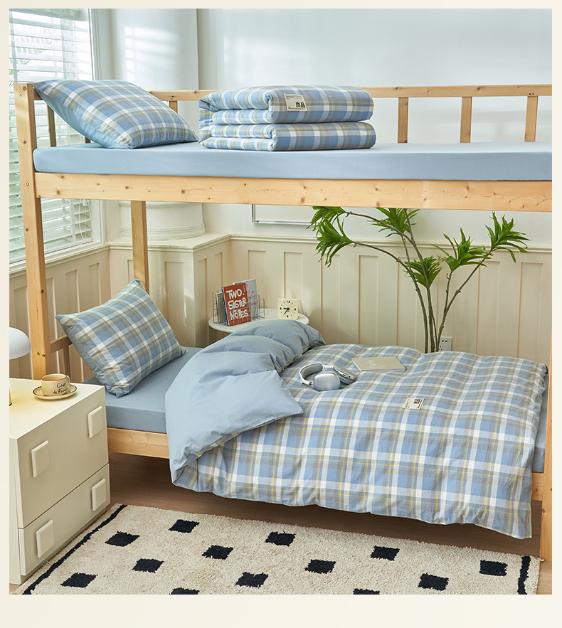 Algodón puro dormitorio universitario cama de tres piezas algodón 2025 verano nuevo estilo funda edredón sábana ropa de cama sábana ropa de cama