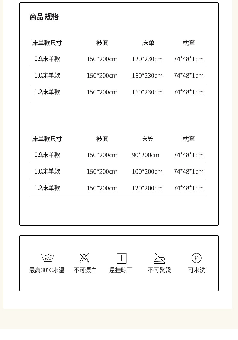 | Especificaciones de tamaño | Juego de sábanas de tres piezas de 0,9 m [funda de edredón 150*200cm sábanas 120*230cm],Sábana de tres piezas de 1.0m [funda de edredón 150*200cm sábana 160*230cm],Juego de sábanas de 1,2 m de tres piezas [funda de edredón 150*200cm sábanas 160*230cm],Juego de tres piezas de cama de 0,9 m [funda de edredón 150*200cm funda de cama 90*200cm],Sombrilla de cama de tres piezas de 1.0m [funda de edredón 150*200cm Sombrilla de cama 100*200cm],Juego de cama de 1,2 m de tres piezas [funda de edredón 150*200cm funda de cama 120*200cm] |