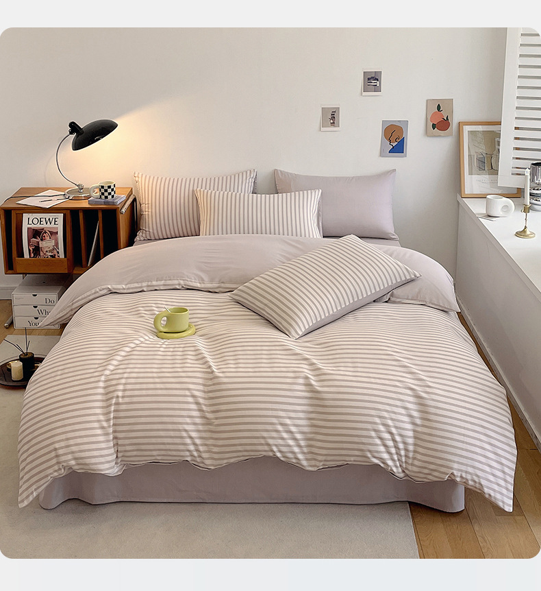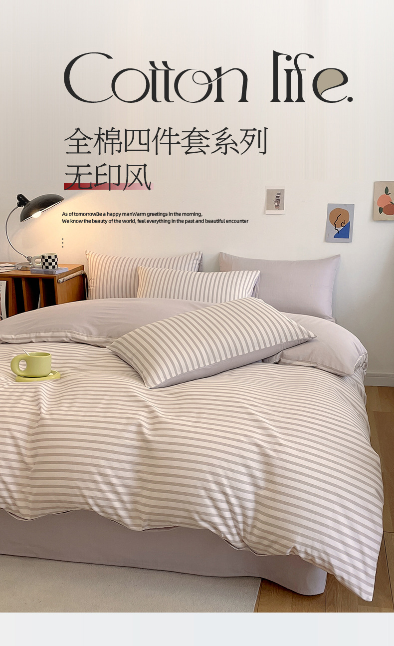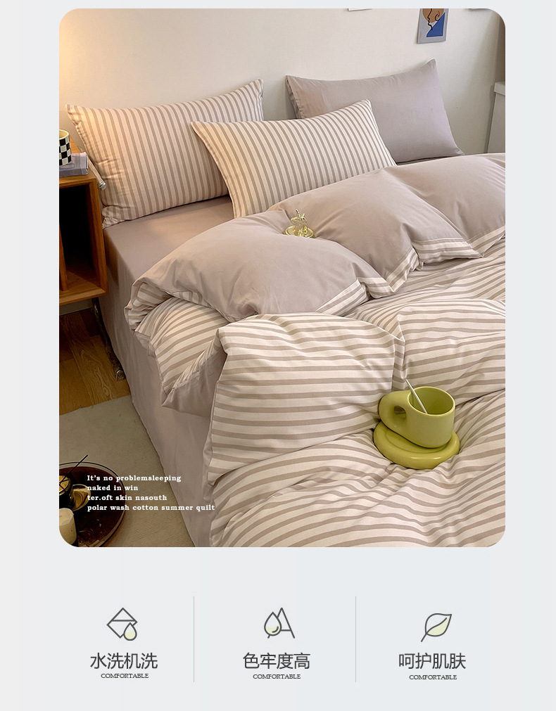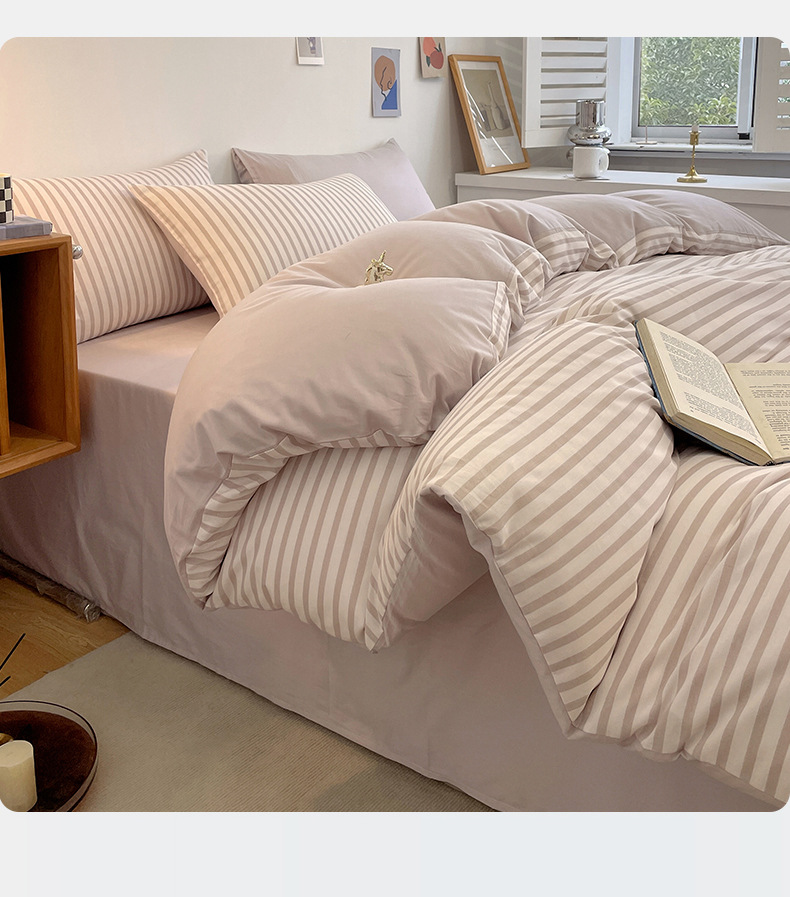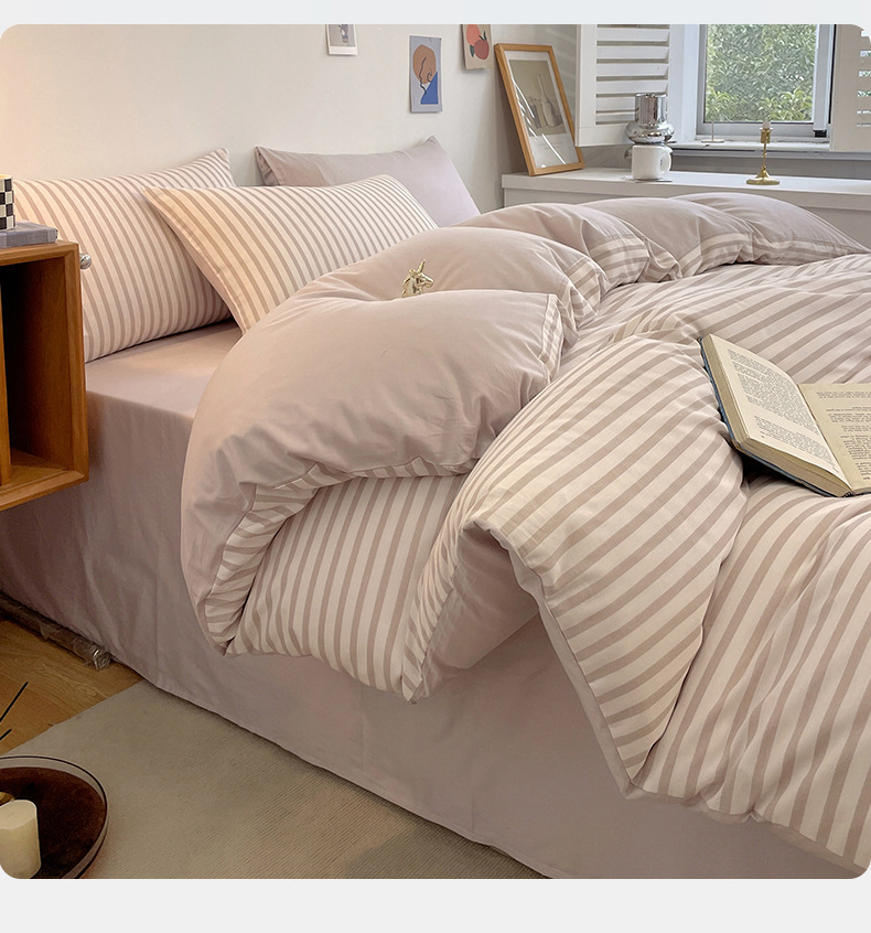 Cama de algodón lavado de algodón de cuatro piezas funda de edredón de sábanas de algodón 2025 nuevo juego de tres piezas de dormitorio de ropa de cama