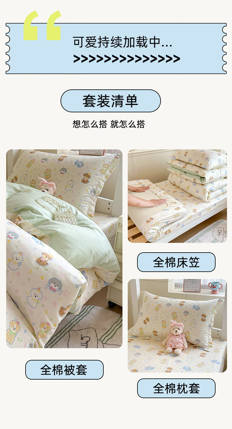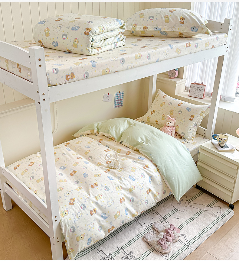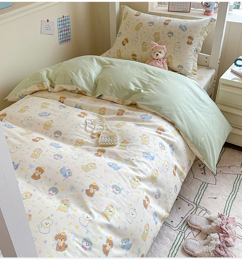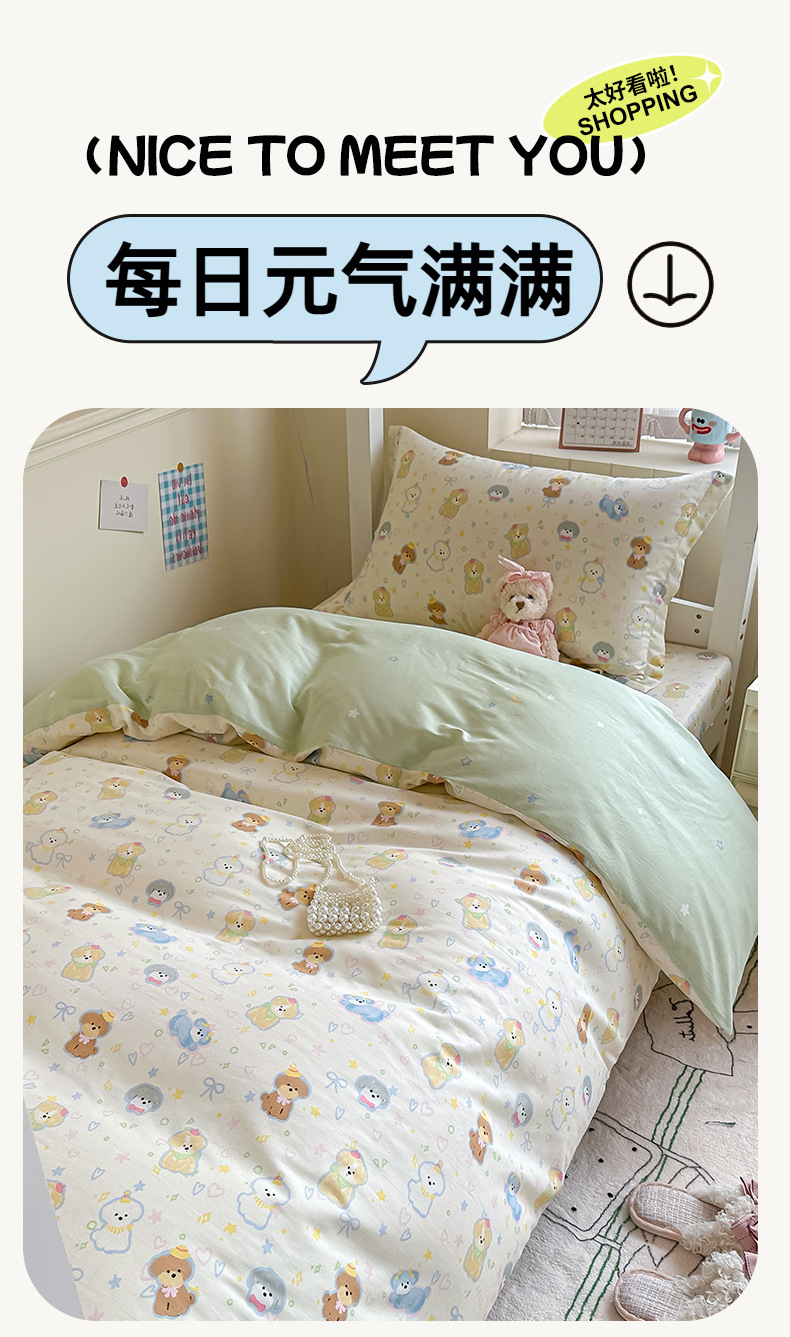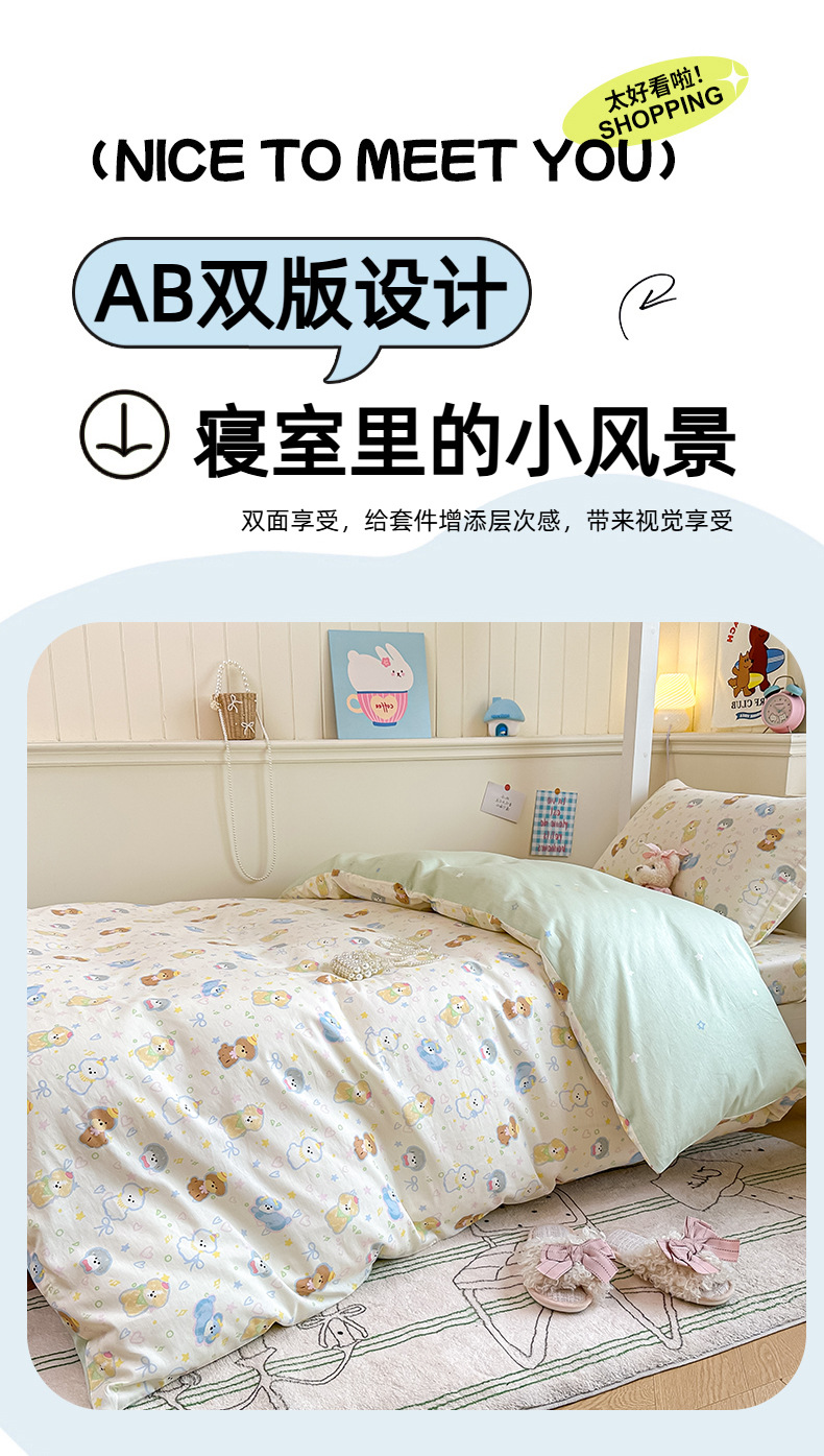 Juego de tres piezas de dibujos animados de algodón dormitorio de estudiantes universitarios 2025 nuevo juego de cuatro piezas de sábanas de algodón con funda de edredón