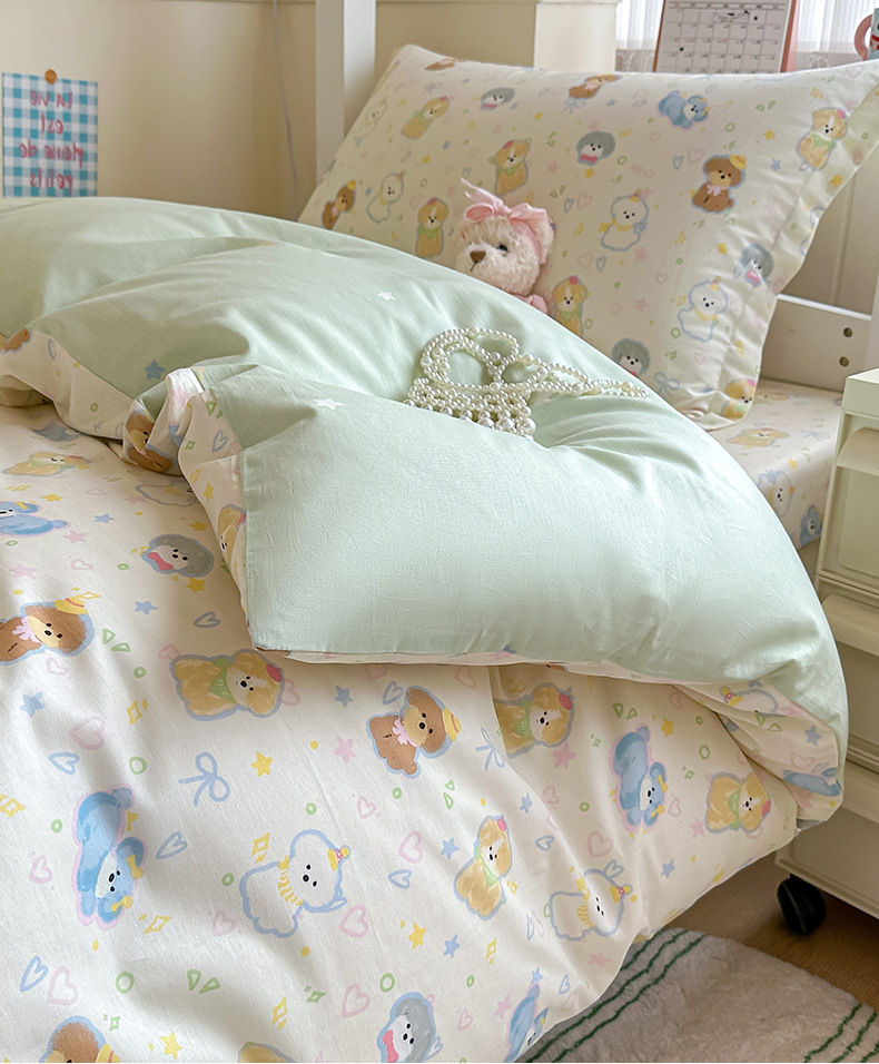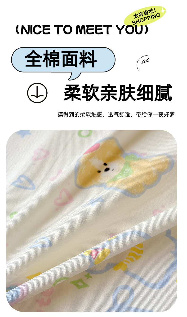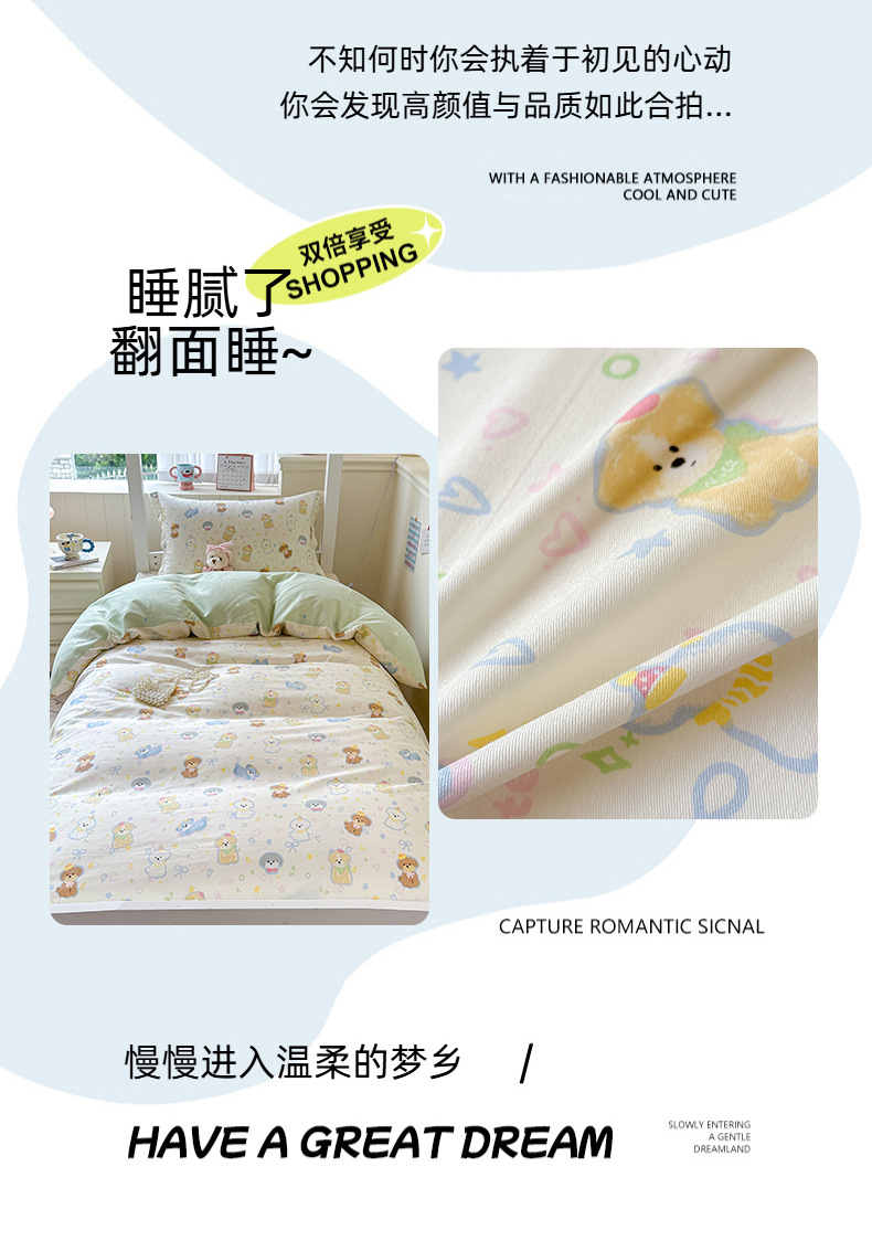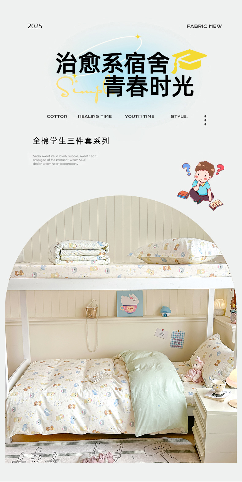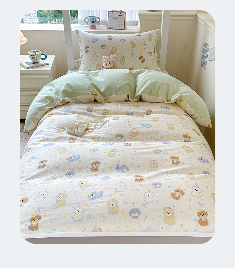 Juego de tres piezas de dibujos animados de algodón dormitorio de estudiantes universitarios 2025 nuevo juego de cuatro piezas de sábanas de algodón con funda de edredón
