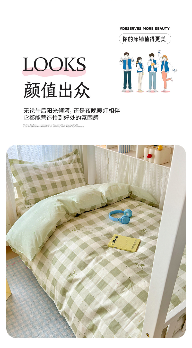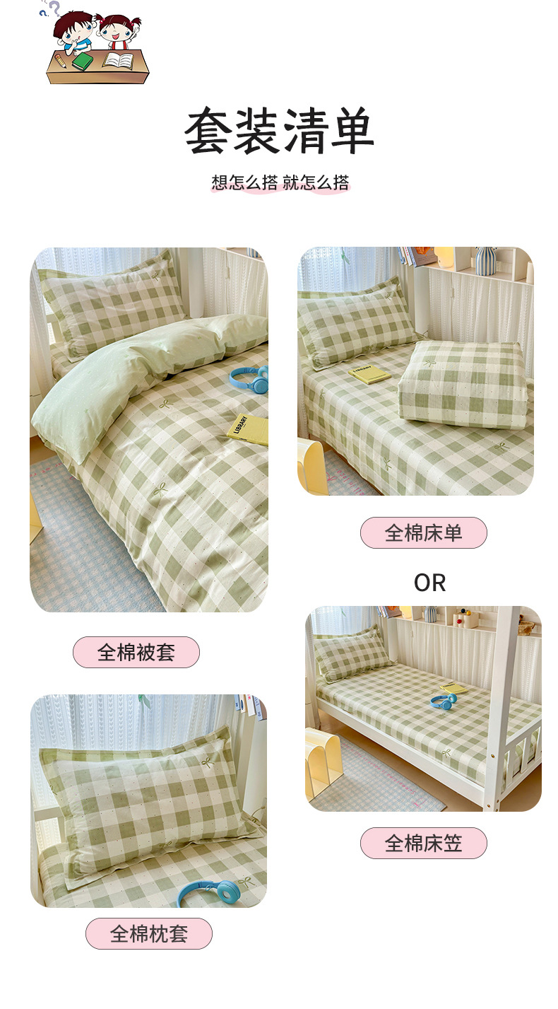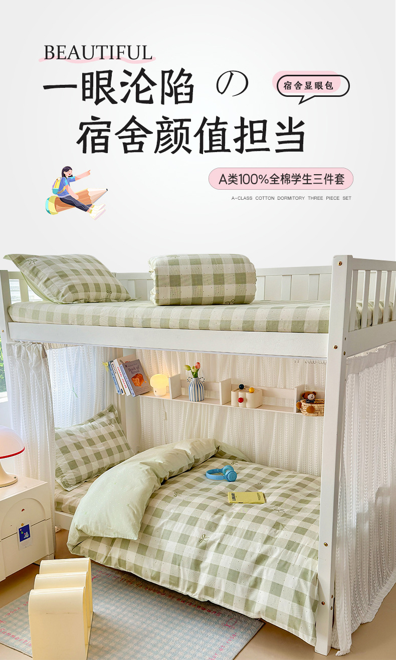 Ropa de cama de tres piezas para dormitorio de estudiantes de algodón puro 100 funda de edredón de sábana individual para dormir desnuda