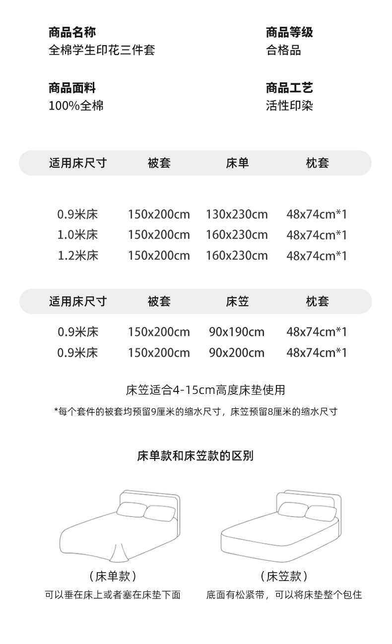 | Especificaciones de tamaño | Juego de sábanas de tres piezas de 0.9m,Juego de sábanas de tres piezas de 1.2m,Sombrilla de cama de tres piezas de 0,9 m Sombrilla de cama 90*190cm,Sombrilla de cama de tres piezas de 0,9 m Sombrilla de cama 90*200cm |