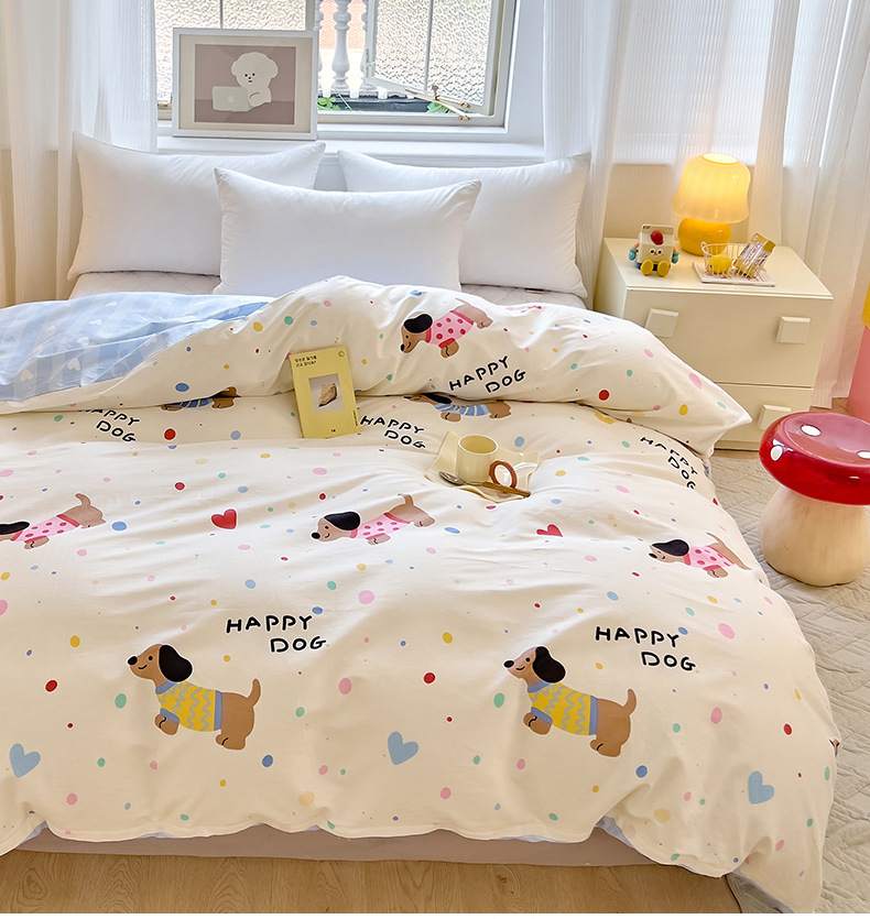 Cama de algodón de dibujos animados juego de cuatro piezas 2025 nuevo verano sábana de algodón edredón juego de tres piezas ropa de cama de dormitorio