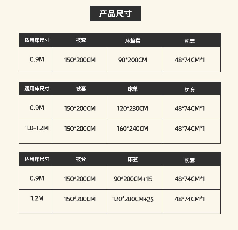 | Especificaciones de tamaño | Juego de tres piezas de cama y sábanas de 0,9 m [funda de edredón 150*200cm sábanas 120*230cm],(1.0-1.2m) Juego de cama y sábanas de tres piezas [funda de edredón 150*200cm sábanas 160*240cm],Juego de tres piezas de cama de 0,9 m [funda de edredón 150*200cm funda de cama 90*200cm],Juego de tres piezas de cama de 1,2 m [funda de edredón 150*200cm funda de cama 120*200cm],Juego de tres piezas con funda de colchón de cama de 0,9 m [funda de edredón 150*200cm funda de colchón 90*200cm] |