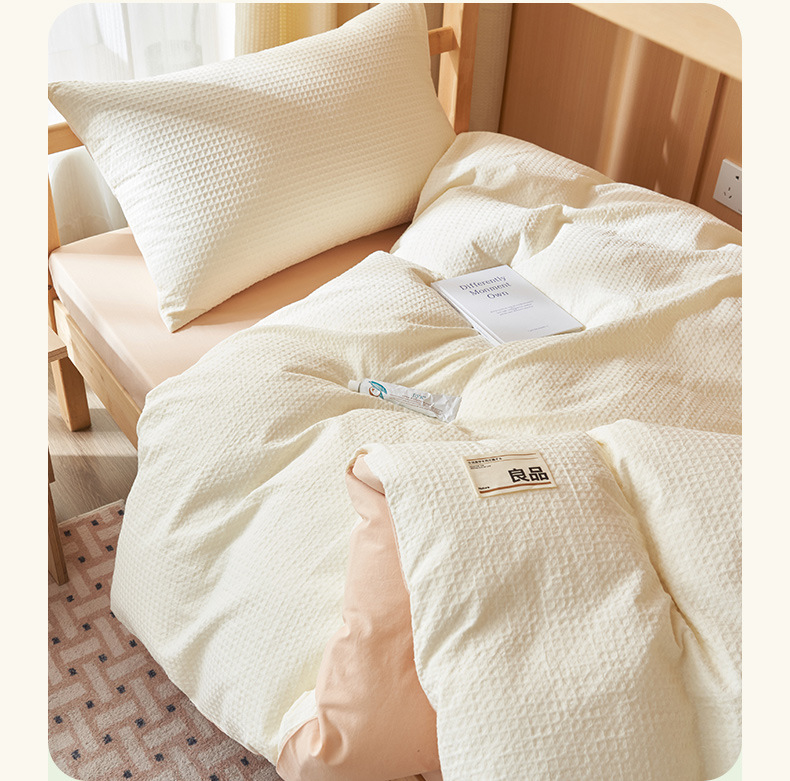 Juego de cama de dormitorio de estudiantes de gofrage de algodón puro de tres piezas 2025 nuevo verano sábana simple ropa de cama
