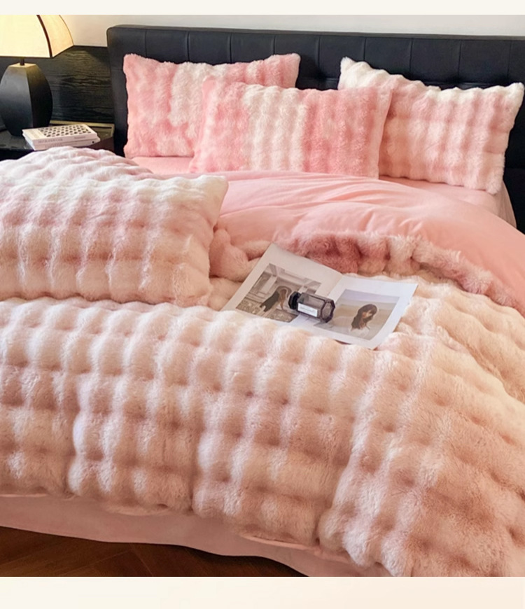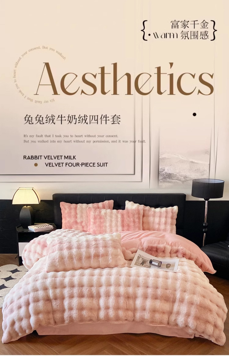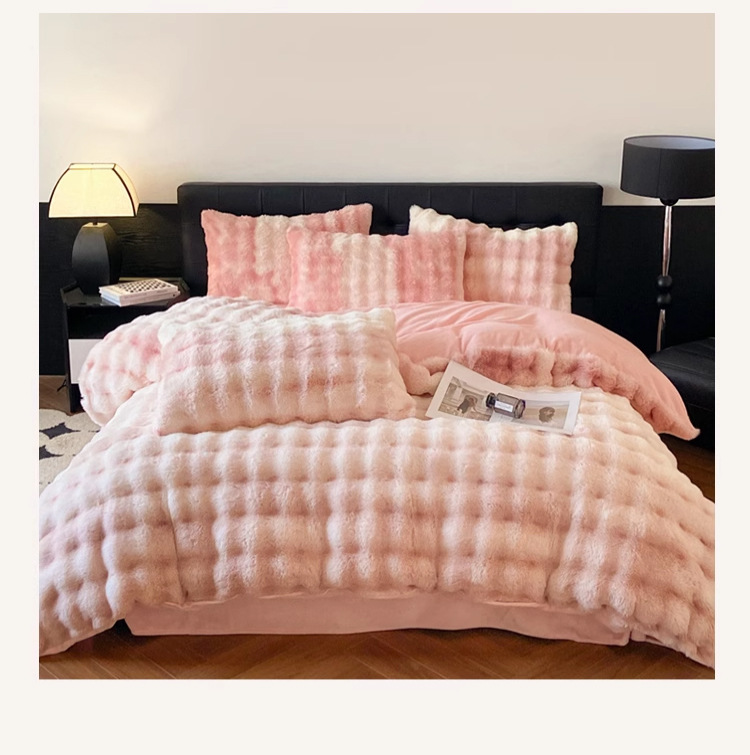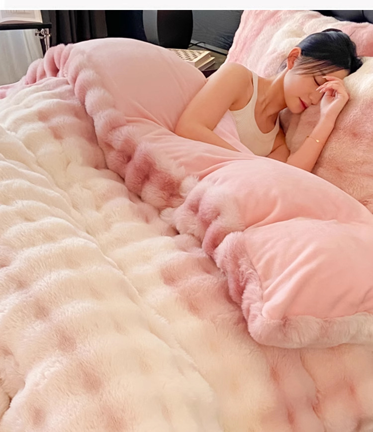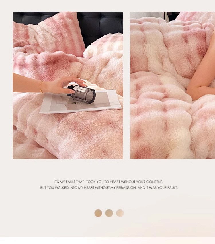 Juego de cuatro piezas de cama de 1,8 m [funda de edredón 200*230cm]-La piel de conejo densa es más suave y cómoda