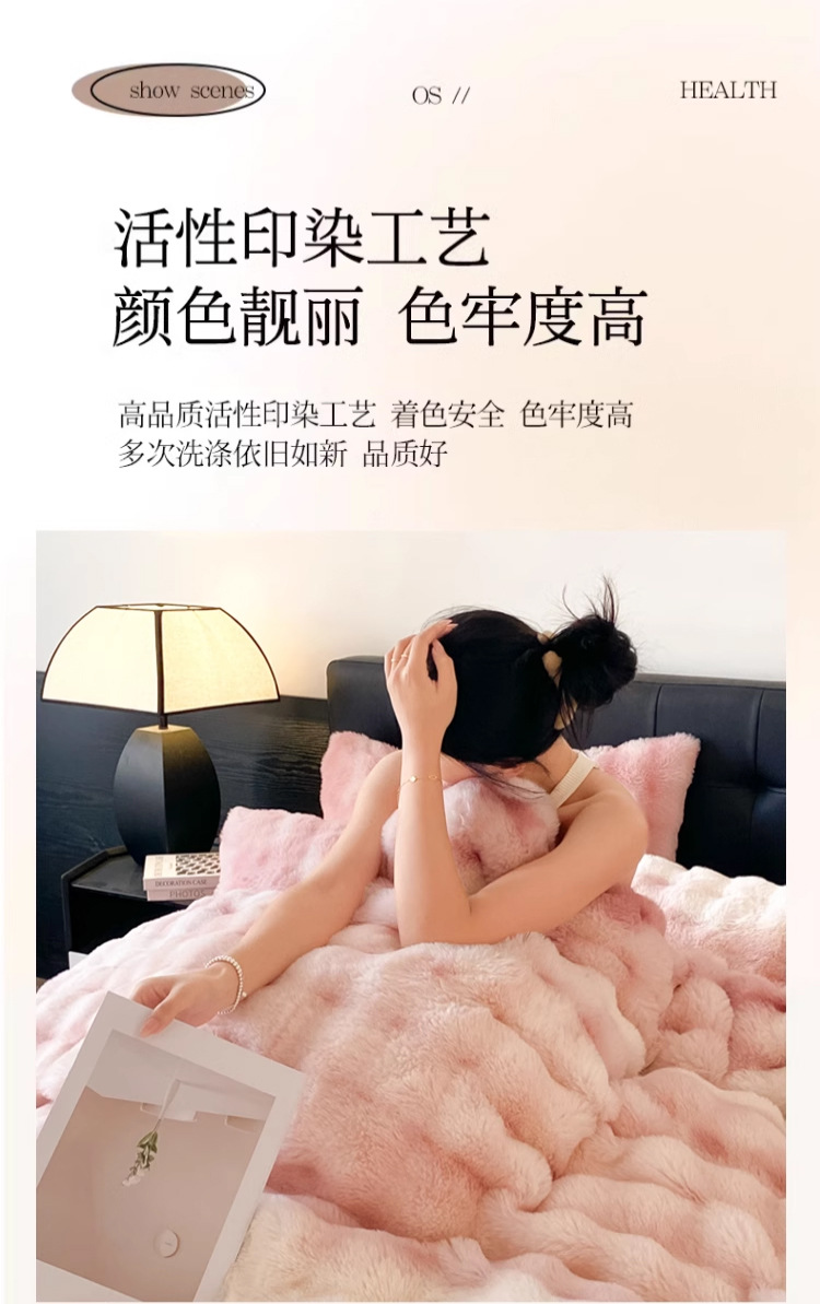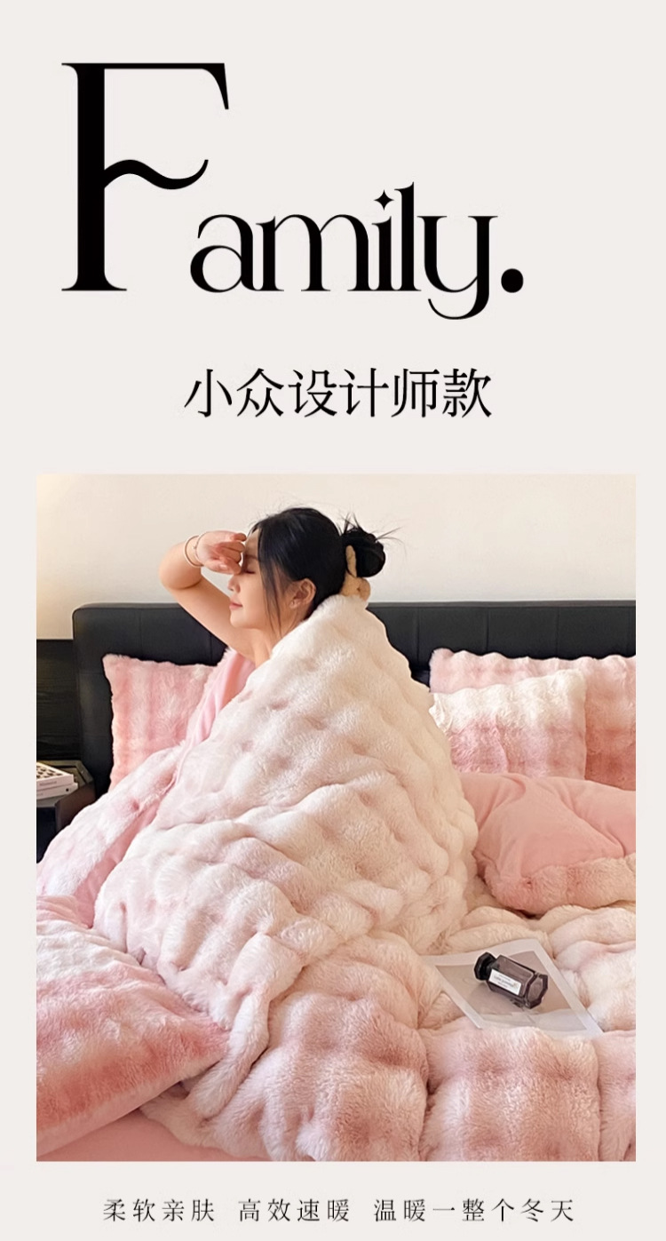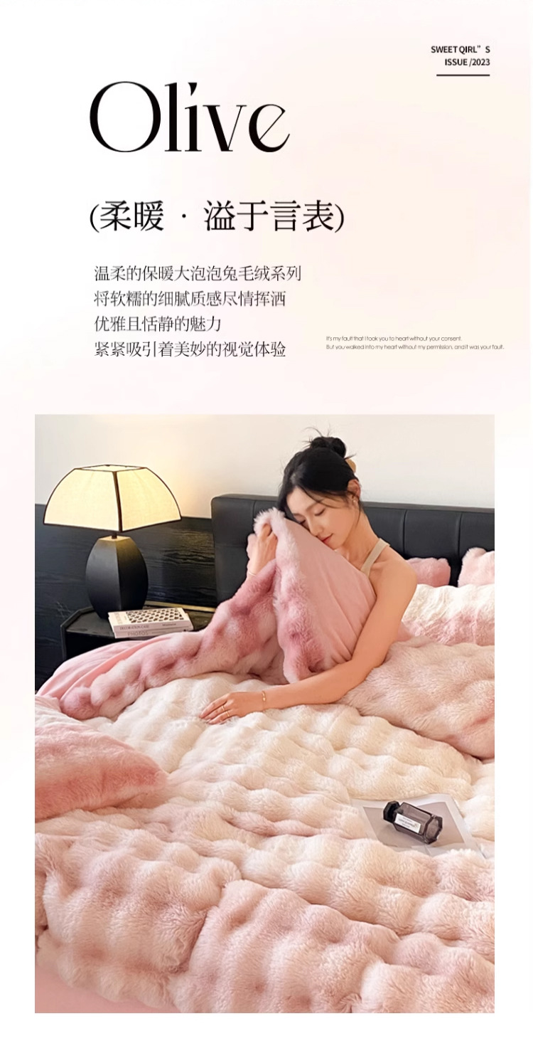 Juego de cuatro piezas de cama de 1,8 m [funda de edredón 200*230cm]-La piel de conejo densa es más suave y cómoda