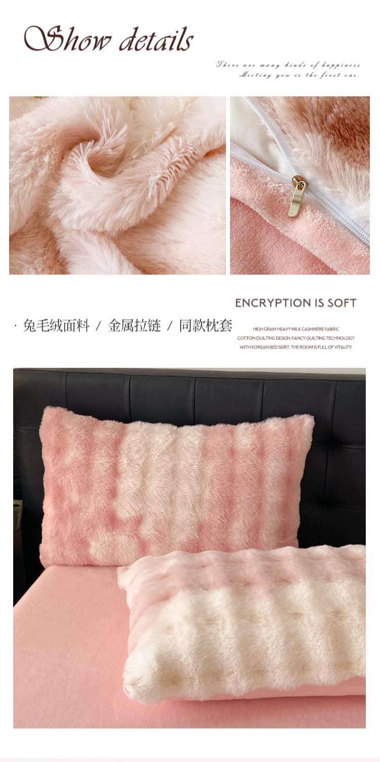 Silla de cama de cuatro piezas de 1,5 m [funda de edredón 200*230cm]-La piel de conejo densa es más suave y cómoda