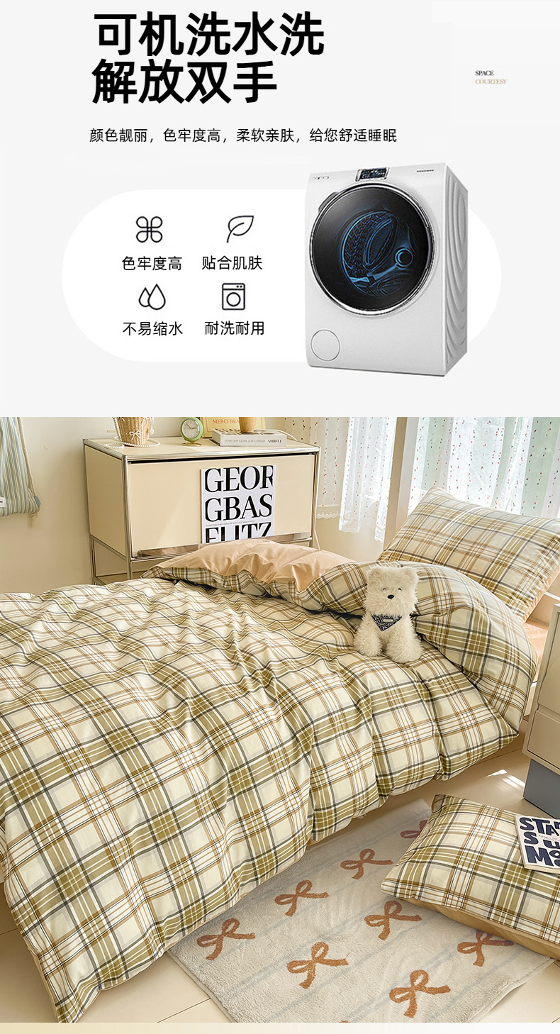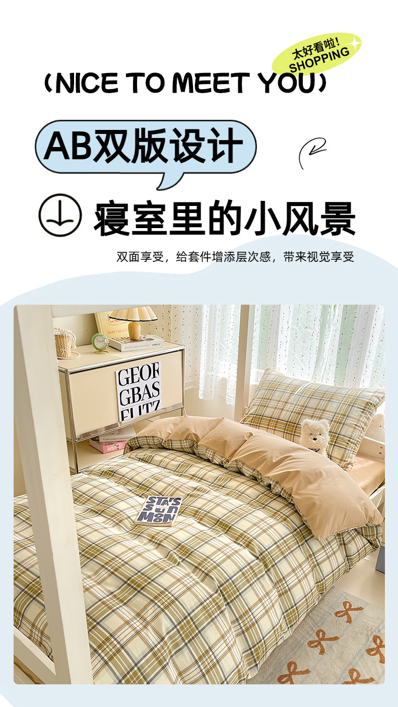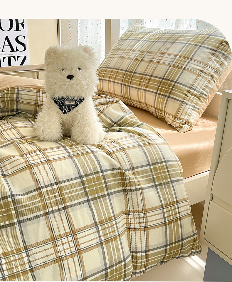 Verano simple algodón dormitorio universitario cama de tres piezas sábanas de algodón puro funda de edredón sábana ropa de cama de seis piezas