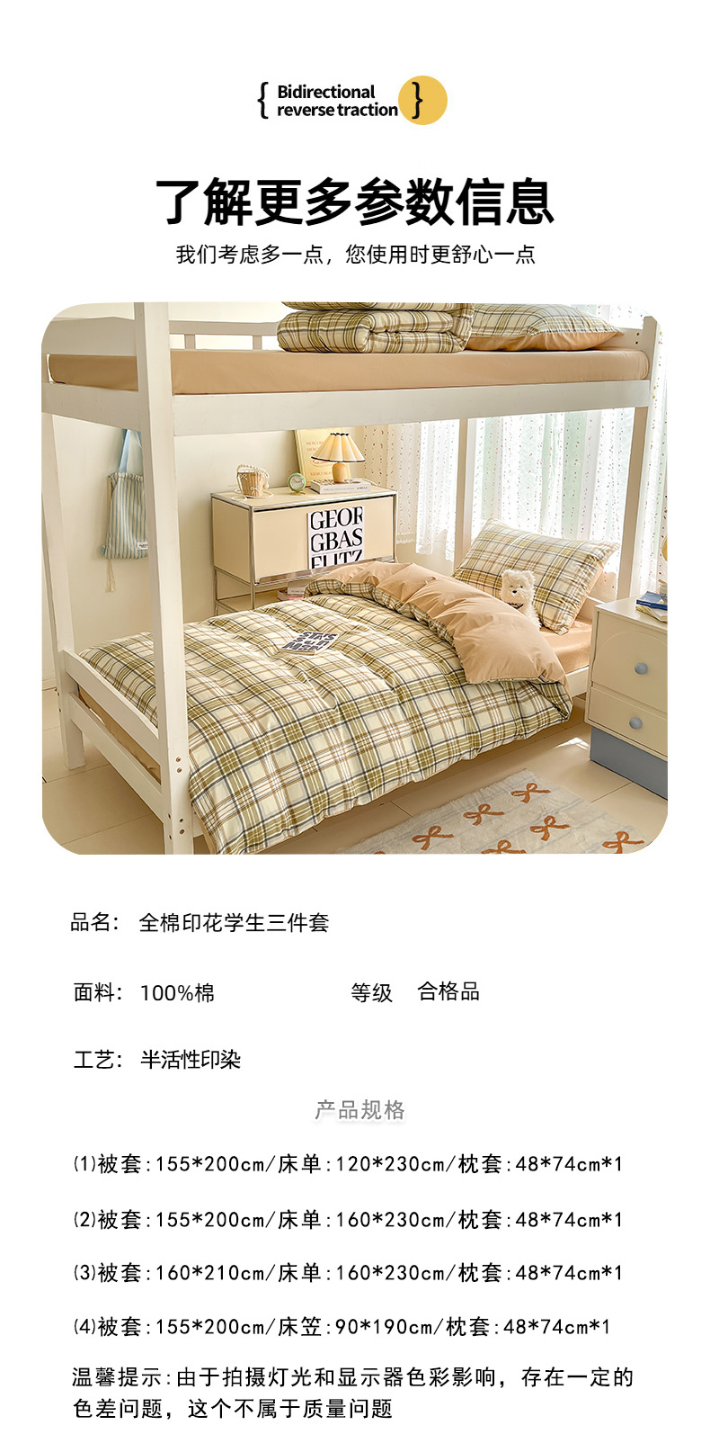 Juego de cama de estudiante de tres piezas de 0,9 m [funda de edredón 150x200cm sábana 120x210cm]