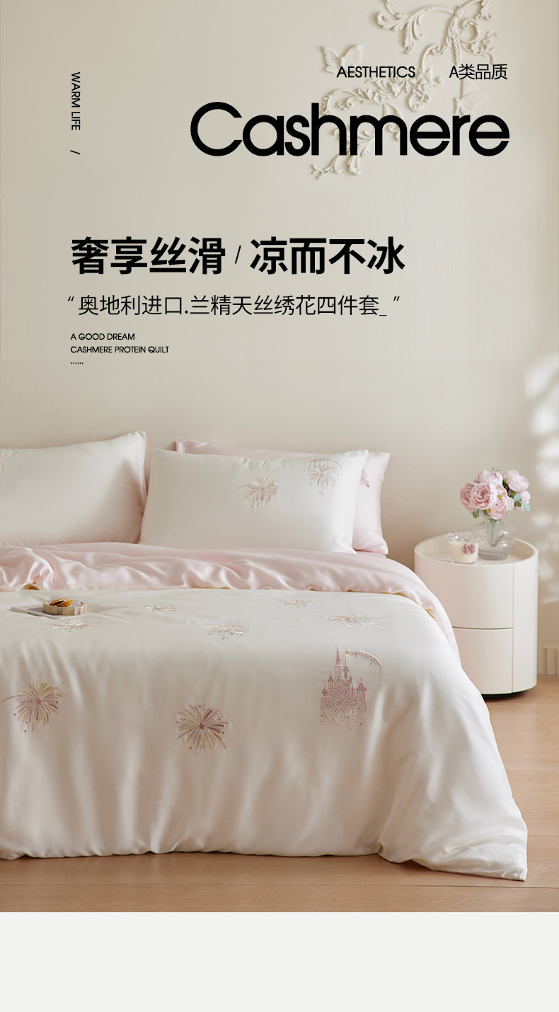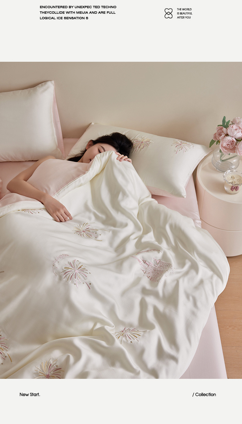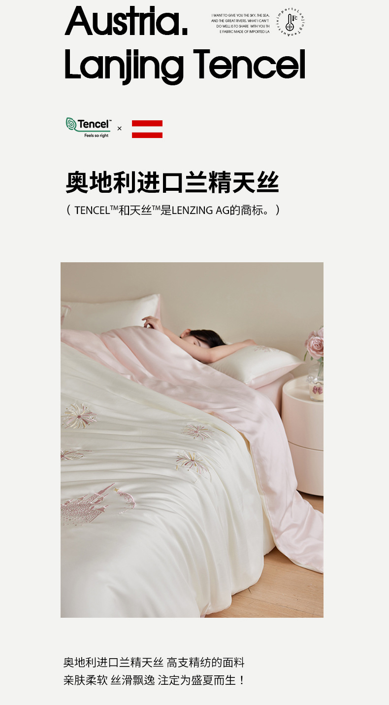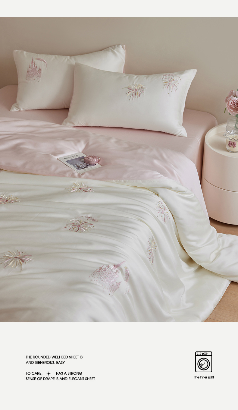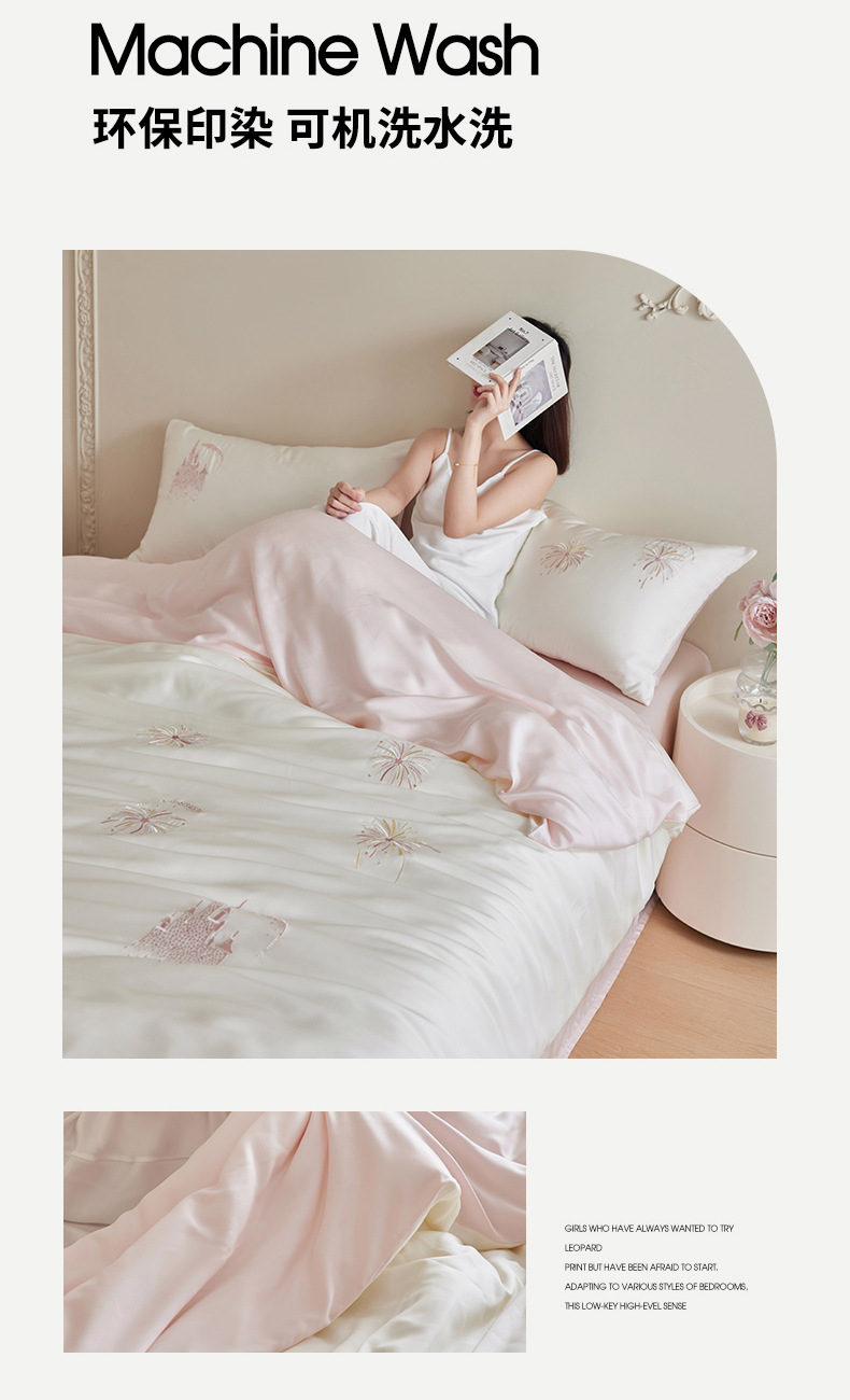 Un juego de cuatro piezas de verano de lujo ligero Lanjing Tensi 2025 nuevo estilo seda de hielo ropa de cama fresca funda de edredón ropa de cama de estilo princesa
