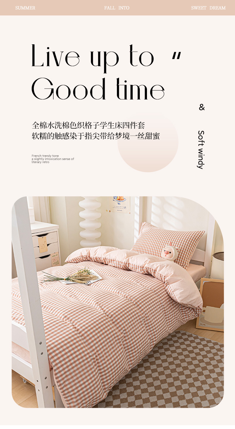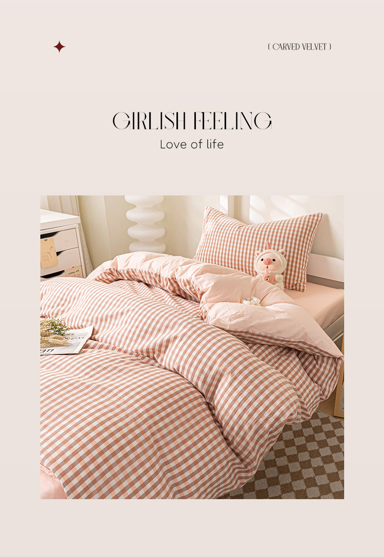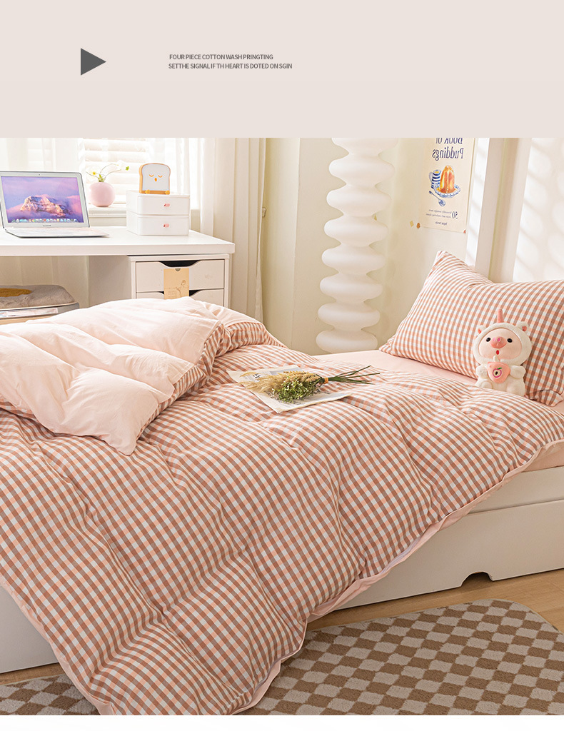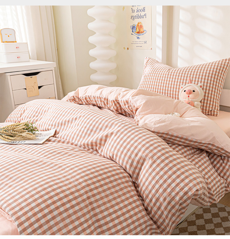 Verano dormitorio universitario conjunto de algodón de tres piezas 2025 nuevo estilo funda de edredón de algodón sábana cama de cuatro piezas ropa de cama