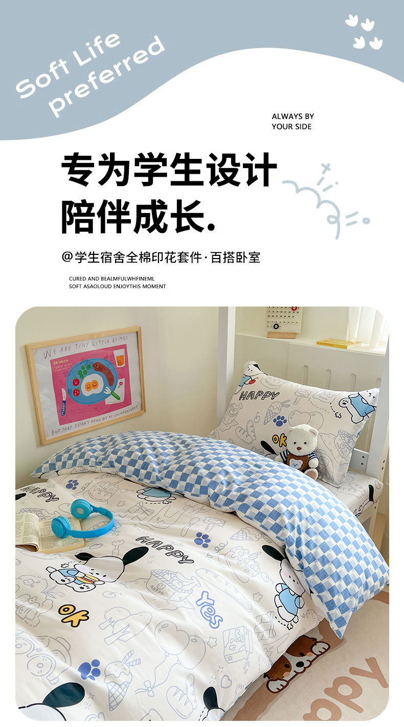 Dormitorio universitario ropa de cama de tres piezas algodón de cuatro piezas 100 sábanas individuales de algodón fundas de edredón
