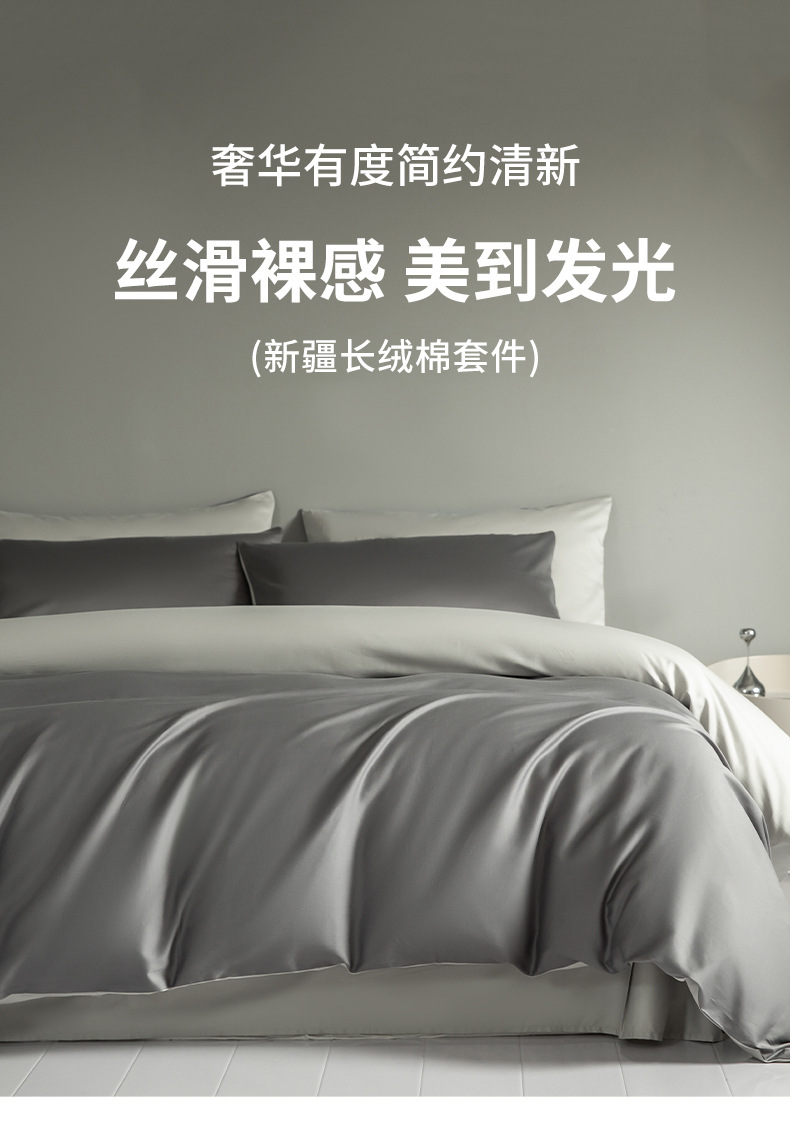 Cama de algodón de fibra larga de cuatro piezas, algodón puro, algodón, lujo ligero, ropa de cama de alta calidad, funda de edredón, ropa de cama de tres piezas