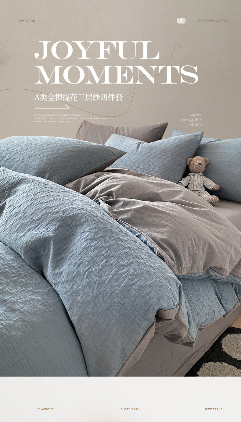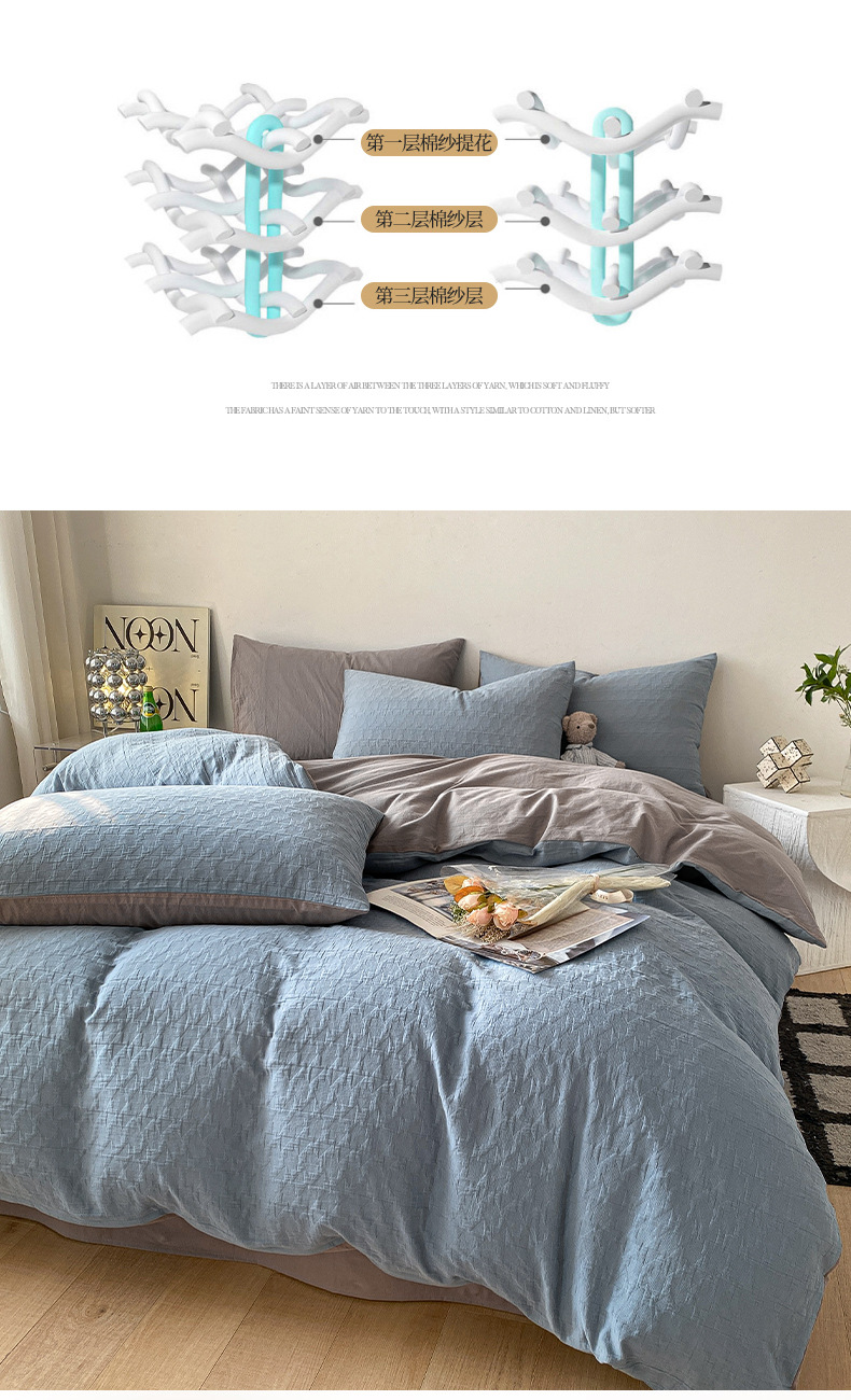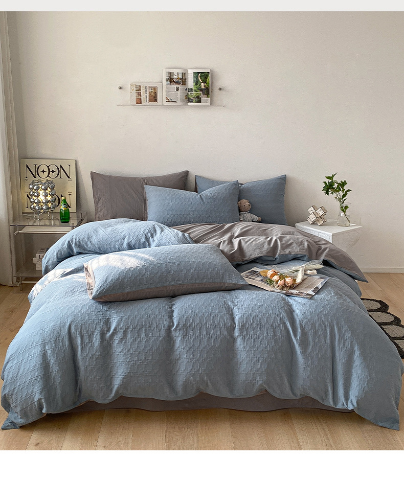 Cama de algodón Cat Man Juego de cuatro piezas de hilo de tres capas de algodón puro 2024 nuevo juego de ropa de cama de tres piezas de ropa de cama de edredón de alta calidad