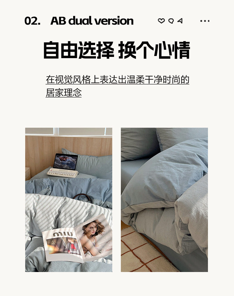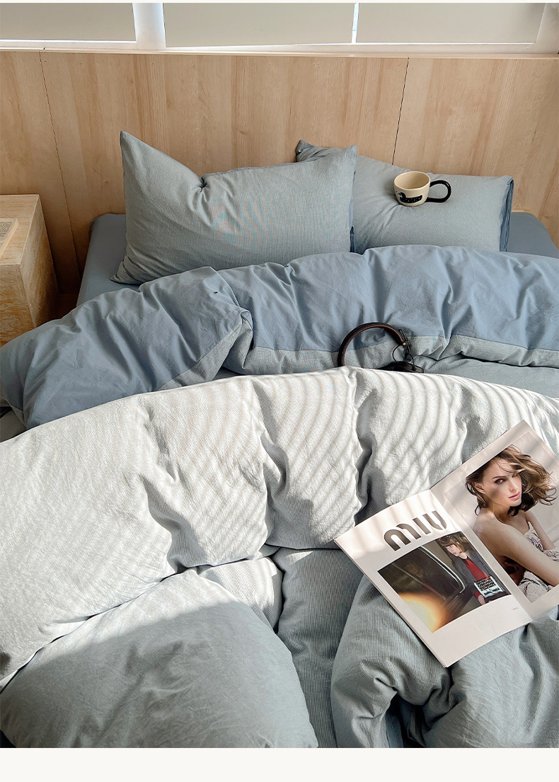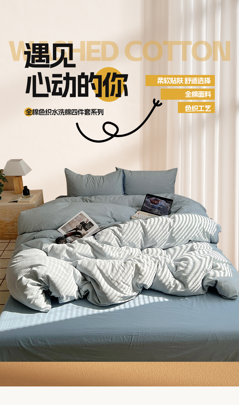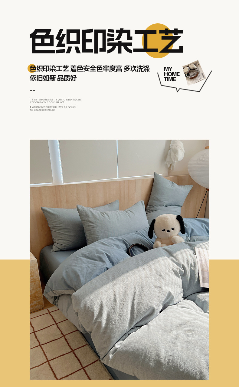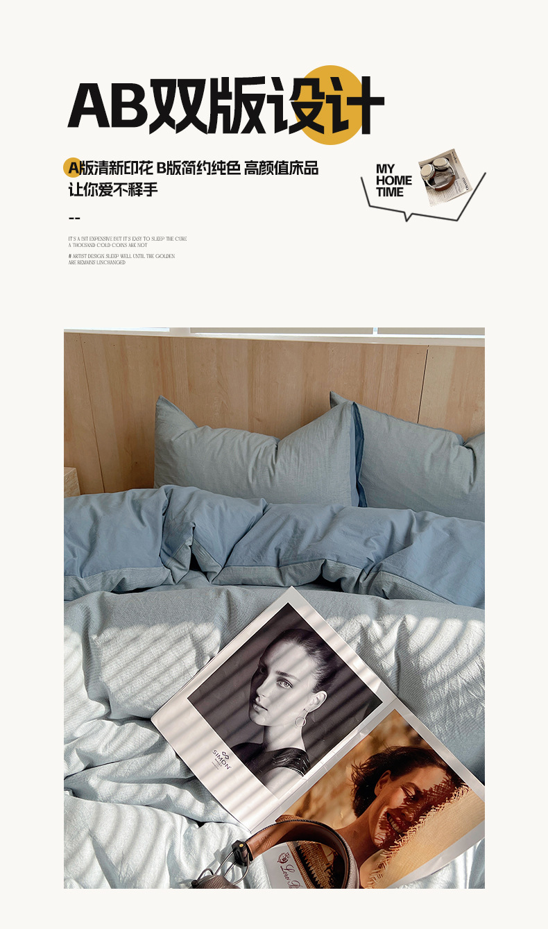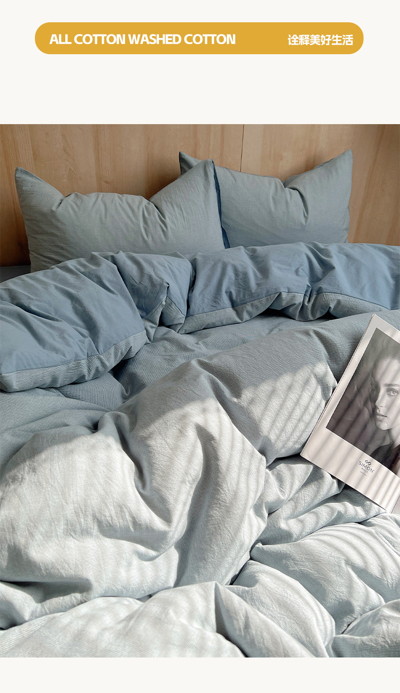 Algodón lavado de algodón Juego de cuatro piezas Algodón puro 2024 Nuevo otoño e invierno Sábana simple Funda de edredón Juego de cama de tres piezas 4