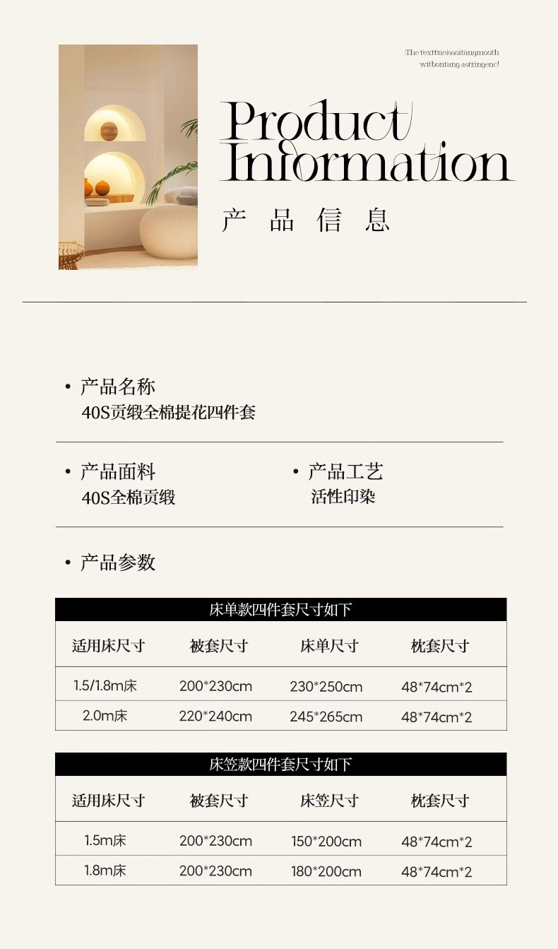 | Especificaciones de tamaño | Cama de 0,9 m [Juego de sábanas de tres piezas]-Adecuado para edredón de 150x200cm,Cama de 1,2 m [Juego de sábanas de tres piezas]-adecuado para núcleo de edredón de 150x200cm,Cama de 1,5 m [Juego de sábanas de cuatro piezas]-Adecuado para edredón de 200x230cm,Cama de 1,8 m [Juego de sábanas de cuatro piezas]-Adecuado para edredón de 200x230cm,Cama de 2.0m [Juego de sábanas de cuatro piezas]-Adecuado para edredón de 220x240cm,Cama de 1,5 m [juego de cuatro piezas de sábana]-adecuada para edredón de 200x230cm,Cama de 1,8 m [juego de cuatro piezas de sábana]-adecuado para edredón de 200x230cm |