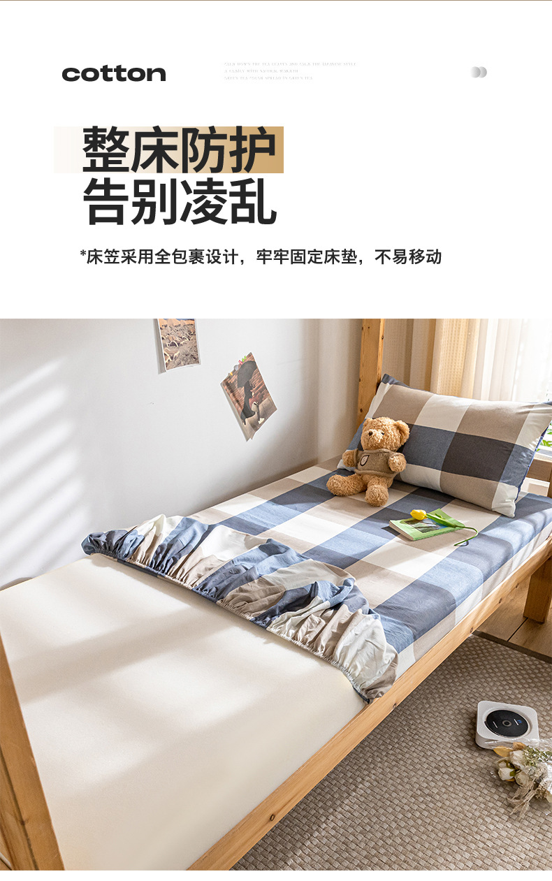 Sombrilla de cama de algodón de tres piezas para dormitorio de estudiantes universitarios, juego individual, funda protectora de colchón de algodón de verano