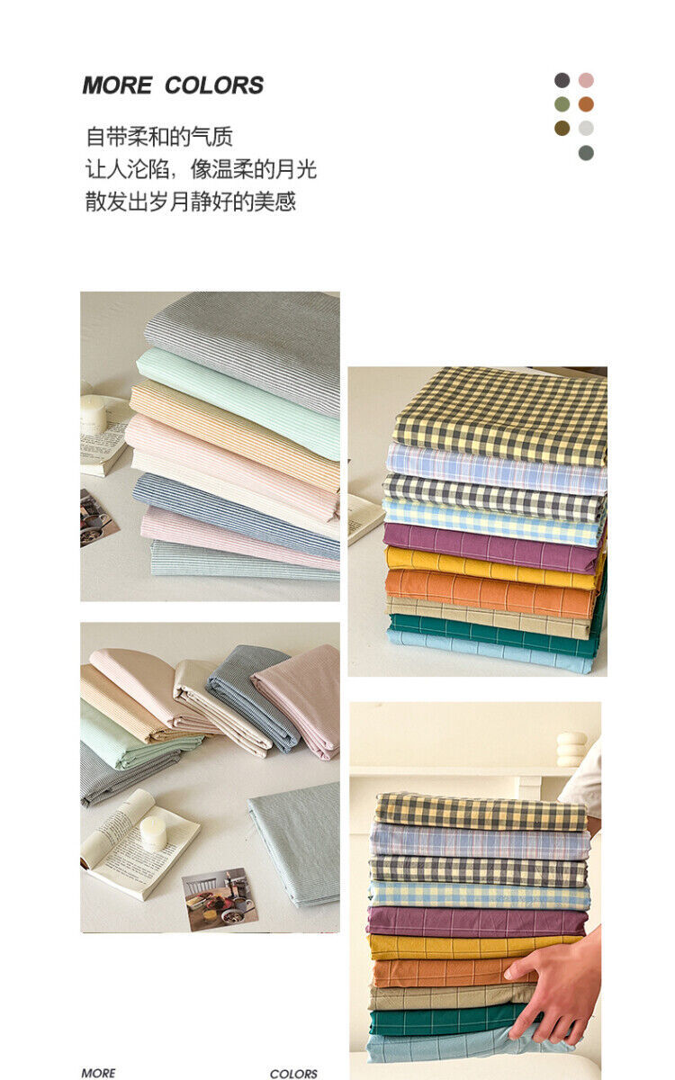 Sábanas de algodón lavado de algodón de estilo japonés, dormitorio de estudiantes de una sola pieza, 100 sábanas dobles individuales de algodón puro, sábana individual, juego de tres piezas 3