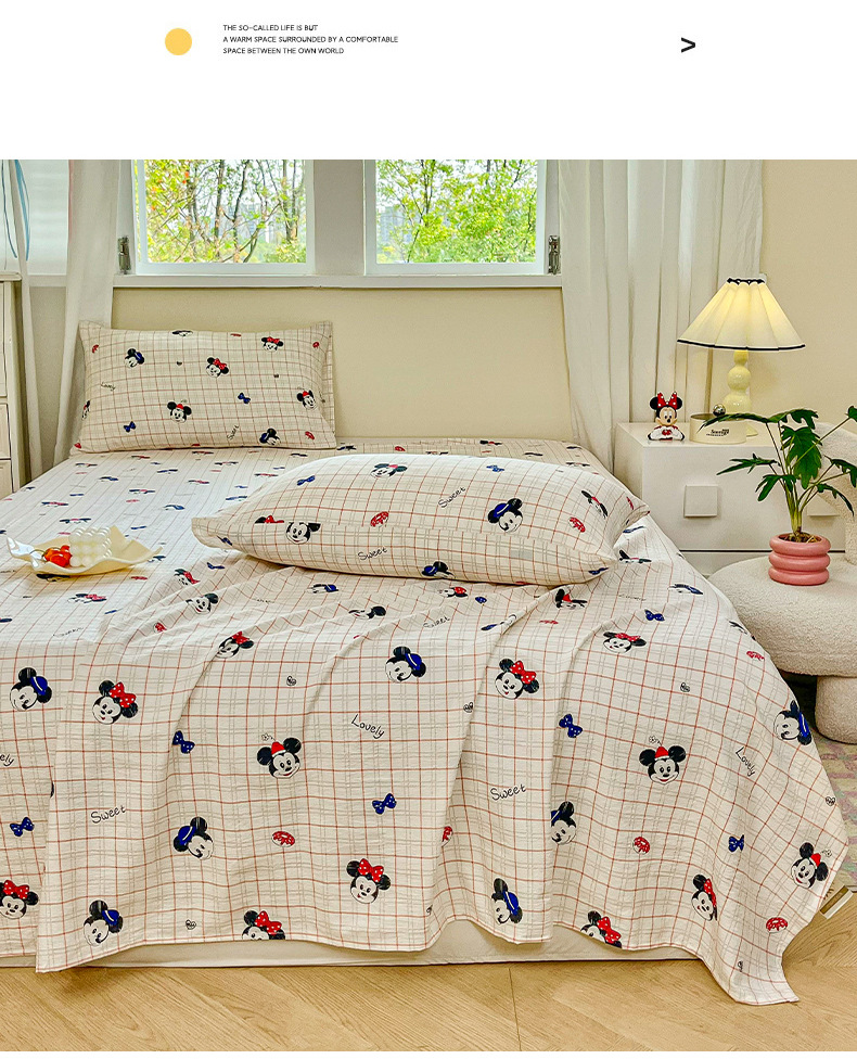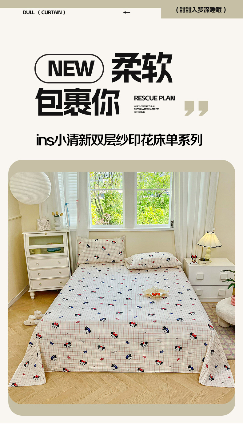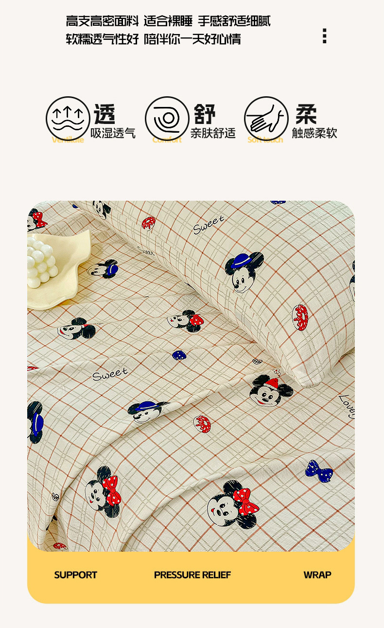 Sábanas de gasa de doble capa de una sola pieza nueva, sábana para dormir desnuda, juego de tres piezas, cama doble de celebridades de Internet, cama kang, sin correr, sin resbalar