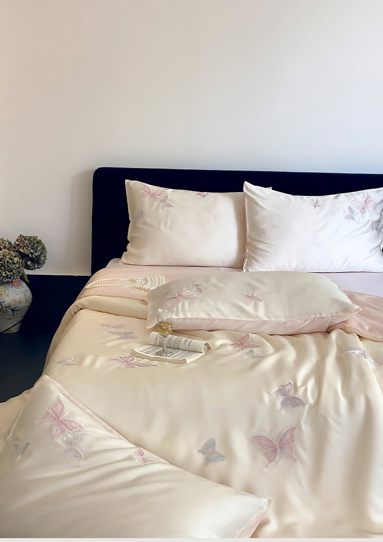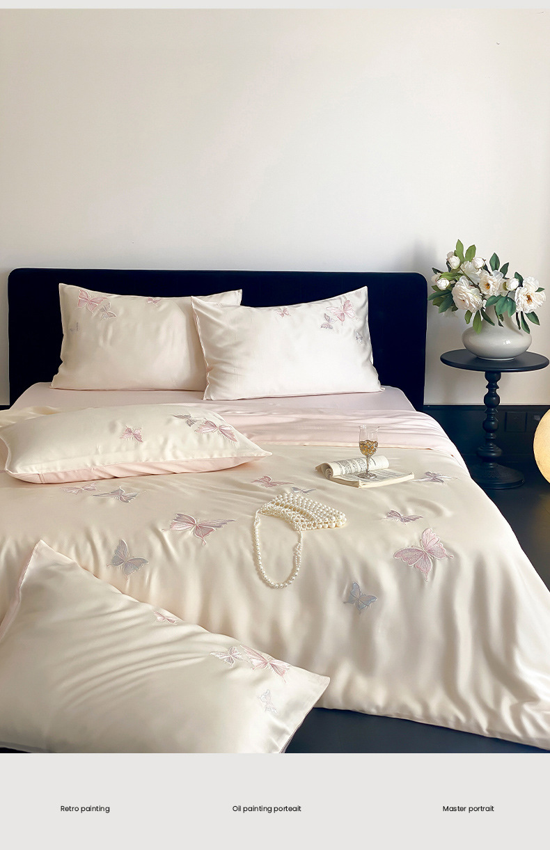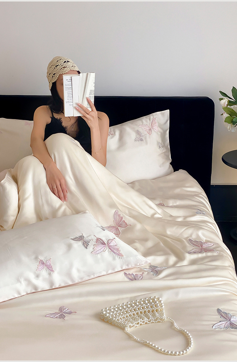 Sensación de alta calidad 60 piezas de cama de seda de cuatro piezas, sábanas frescas de verano, funda de edredón, nueva ropa de cama 2025