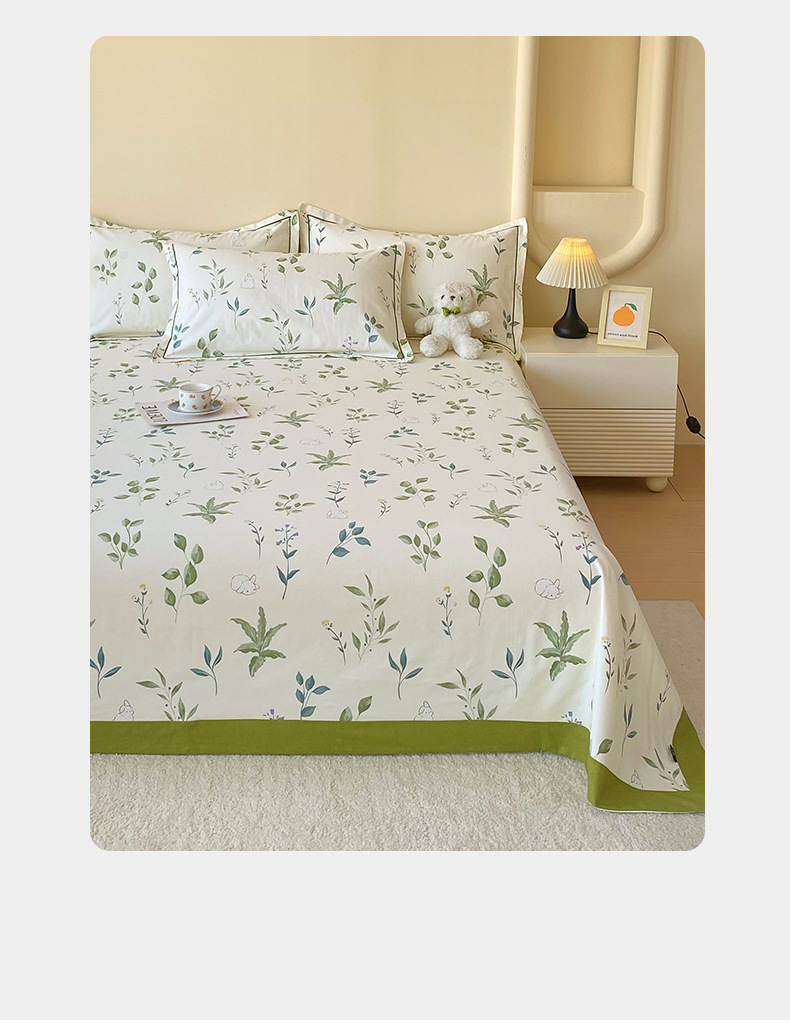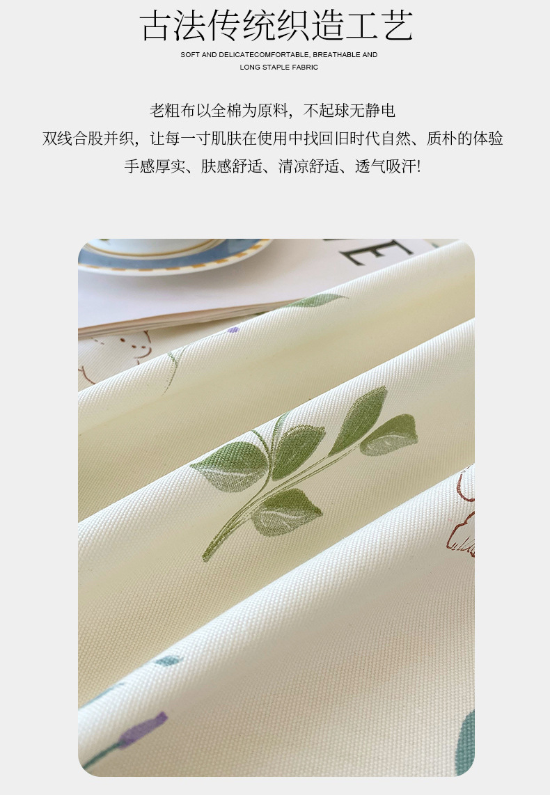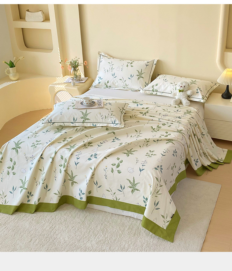 Ropa de cama de tela gruesa vieja de algodón puro, una sola pieza 2025 nueva funda de almohada de edredón impresa de verano, un solo traje de tres piezas