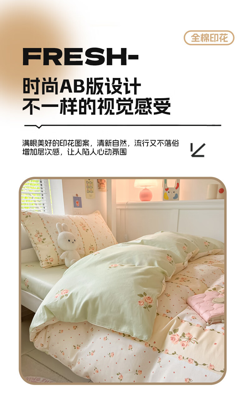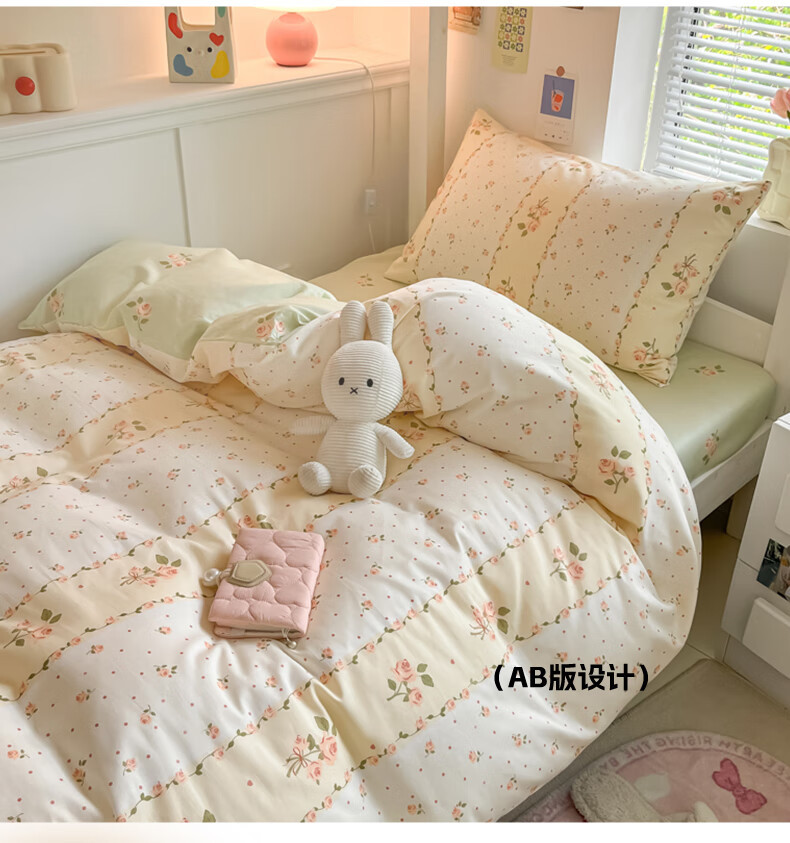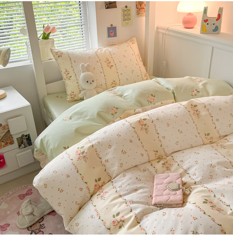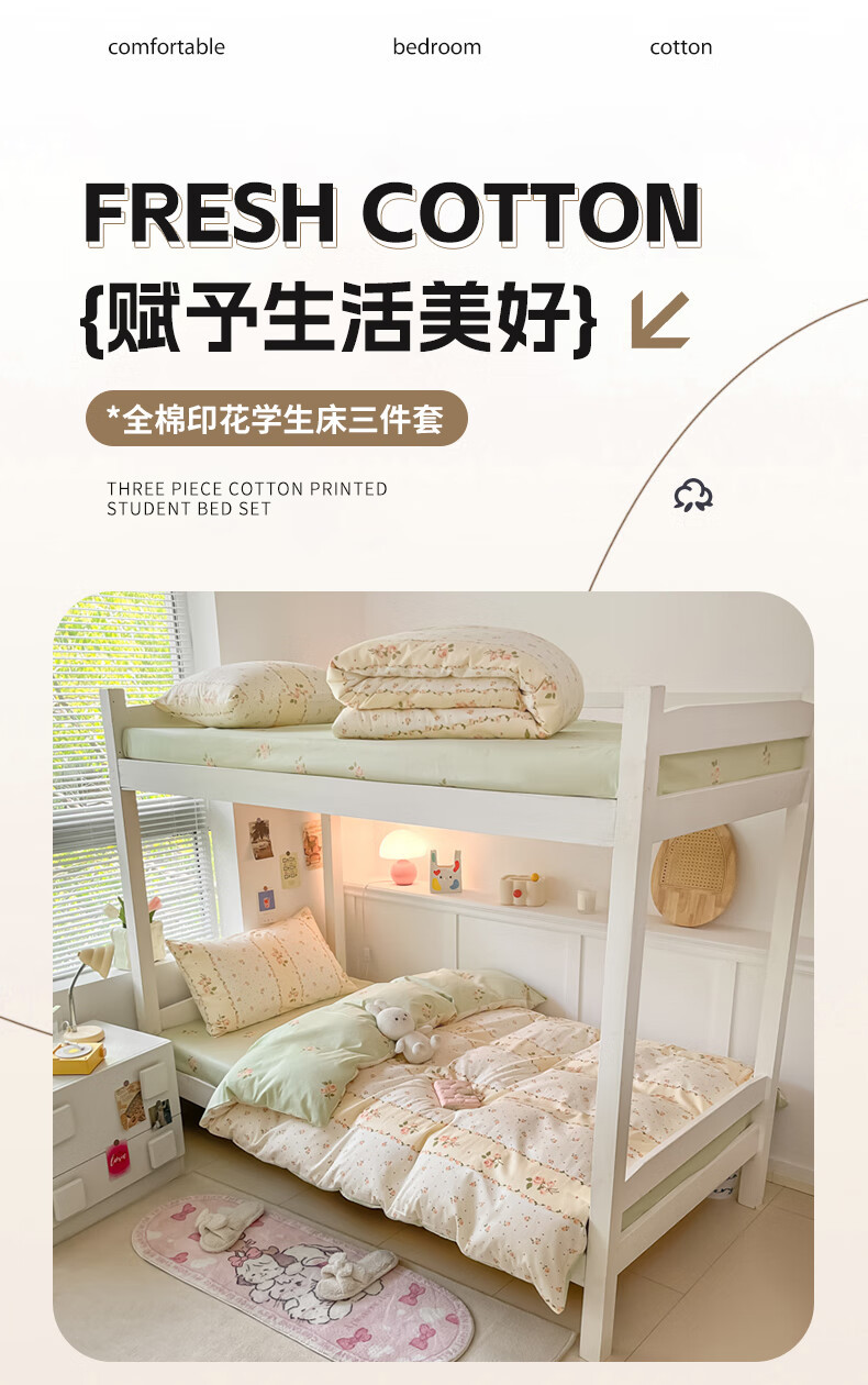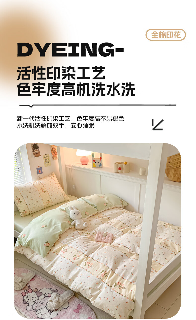 Cama de algodón de tres piezas, dormitorio de estudiantes universitarios de algodón, sábana individual, funda de edredón, sábana, kit para el hogar cuatro