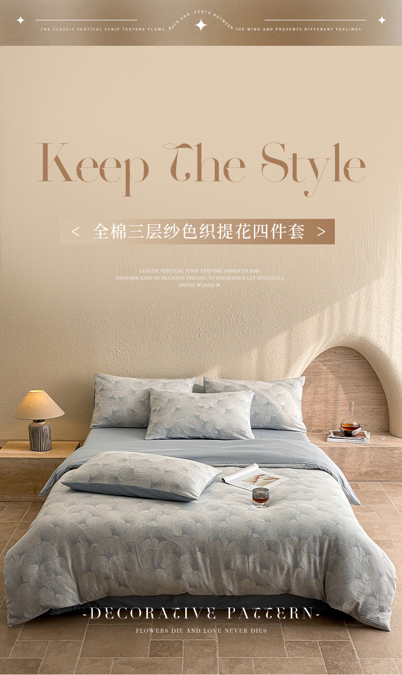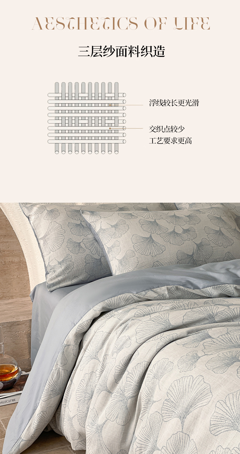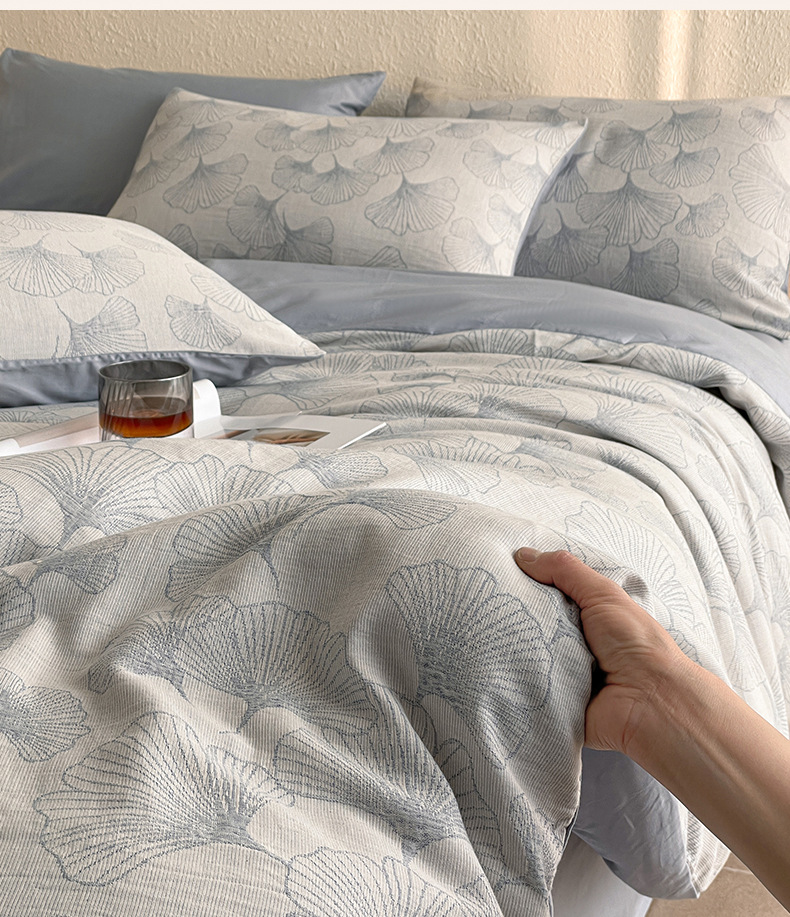Cama de hilo de tres capas, juego de cuatro piezas, algodón puro, 2025, nuevo estilo, lujo ligero, sensación de alta gama, dormitorio principal, cuatro estaciones, universal