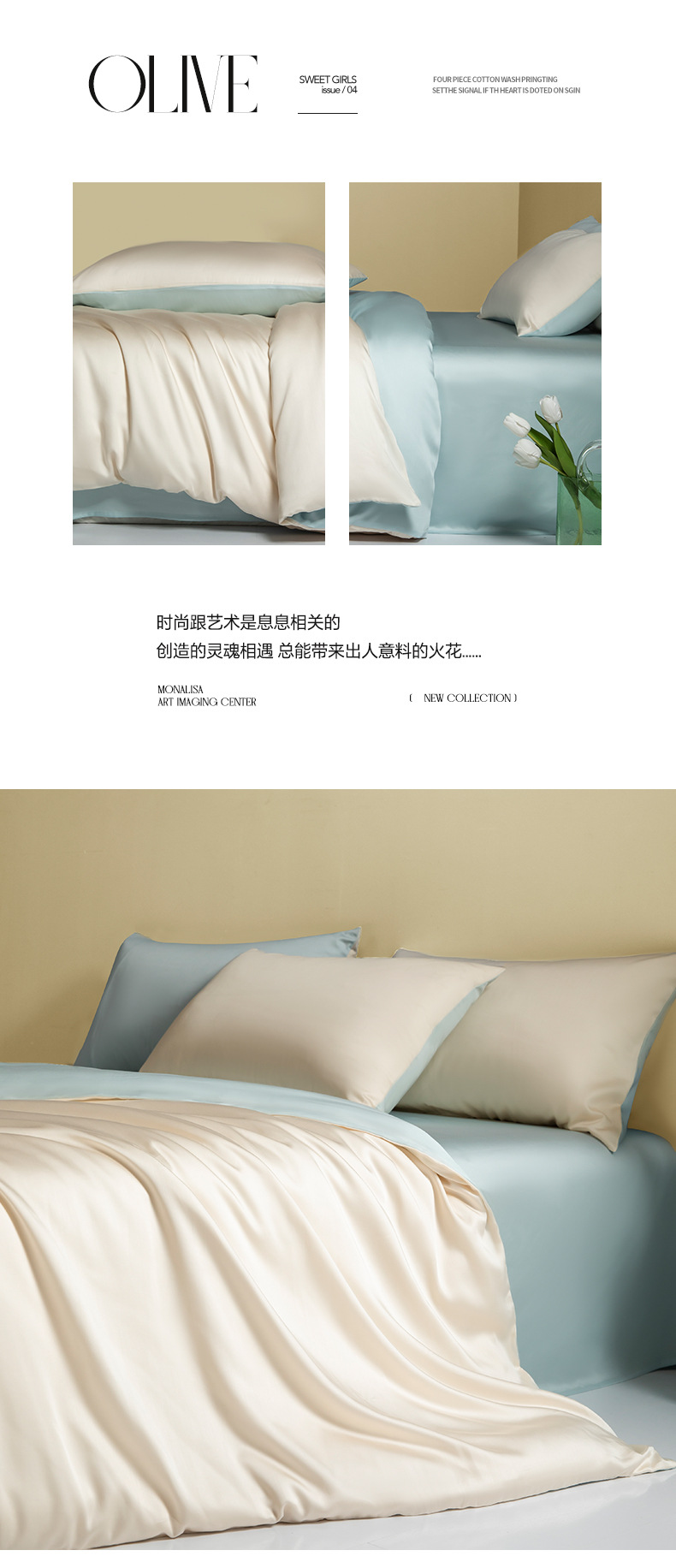 Lycell Tensei ropa de cama de verano de cuatro piezas de seda de hielo cubierta de edredón fresco sábana seda resbaladiza cama desnuda