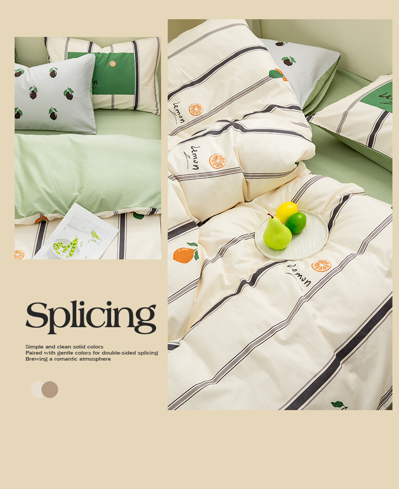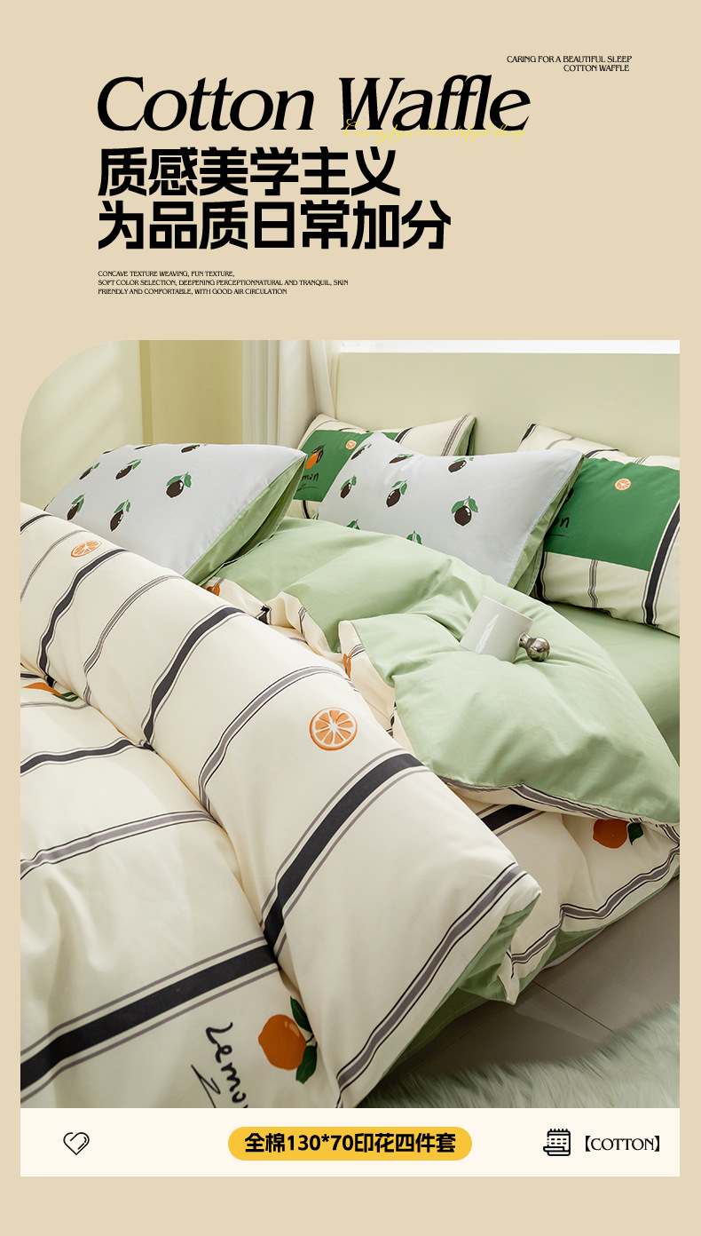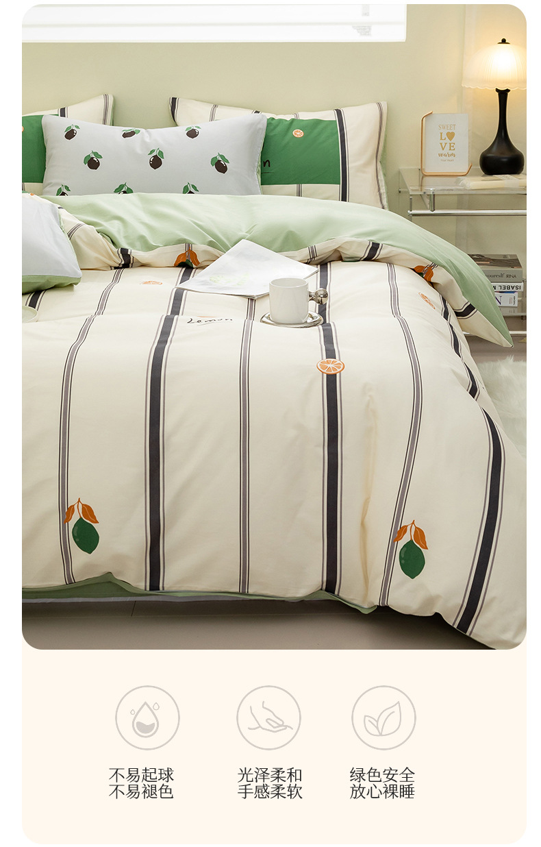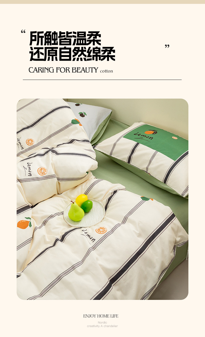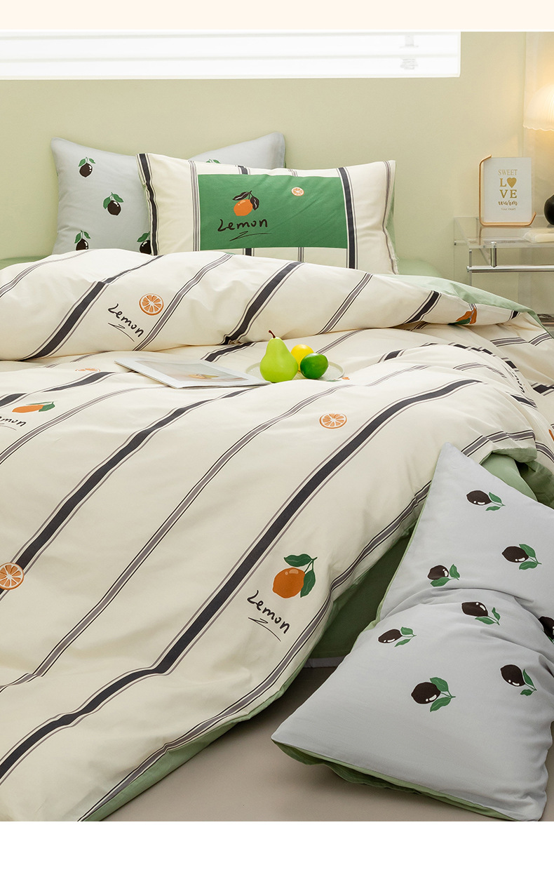 Juego de cuatro piezas de algodón de dibujos animados 2024 nuevo estilo sábana de algodón fresco funda de edredón sábana ropa de cama de verano